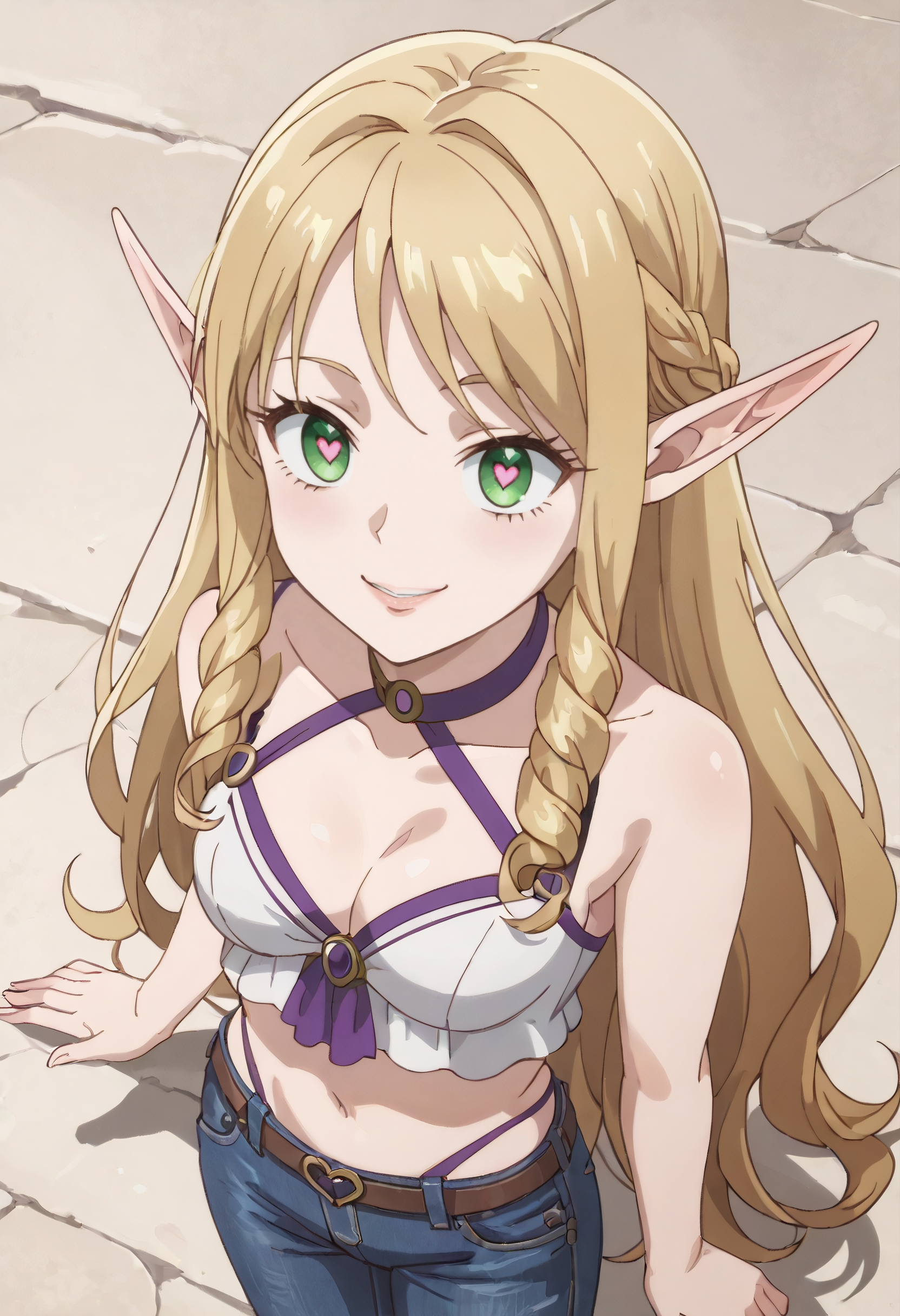 IMMAntelise, 금발, 긴 머리, 뾰족한 귀, 엘프, 드릴 머리, 녹색 눈, 긴 뾰족한 귀, 사이드록, 드릴 사이드록, 매우 긴 머리, 땋은 머리,