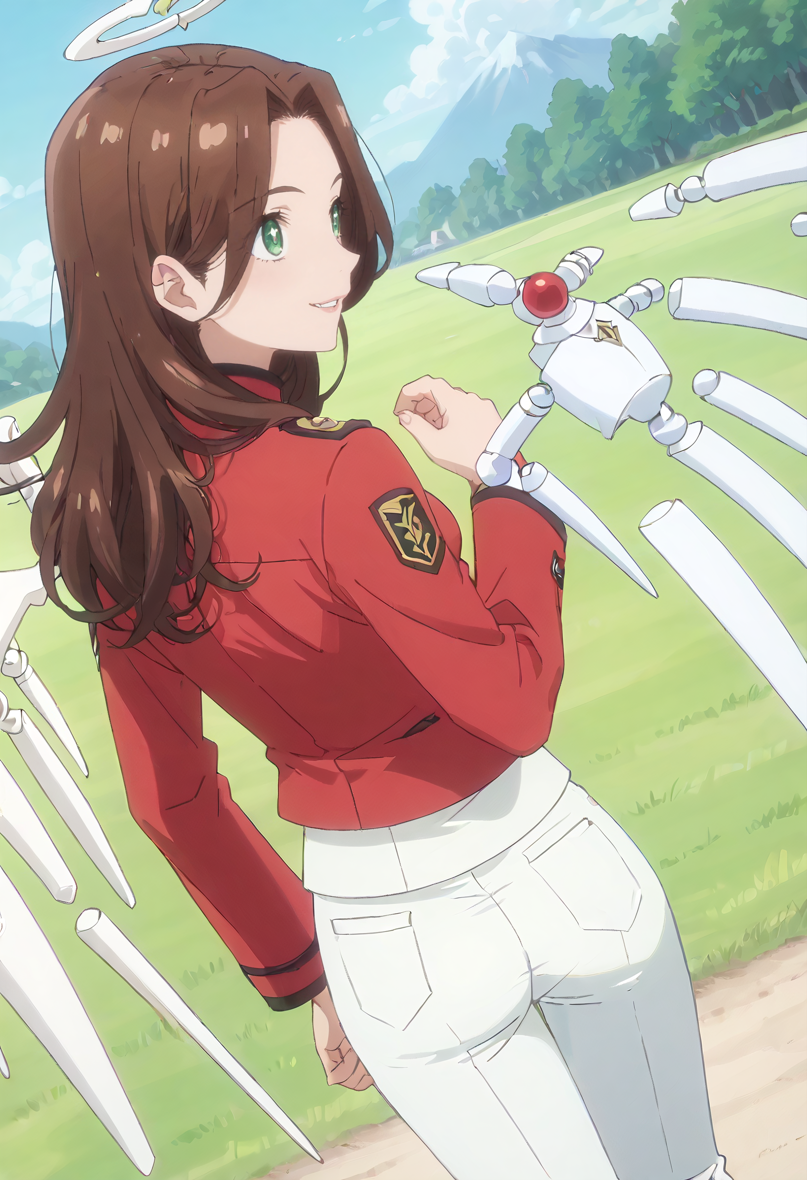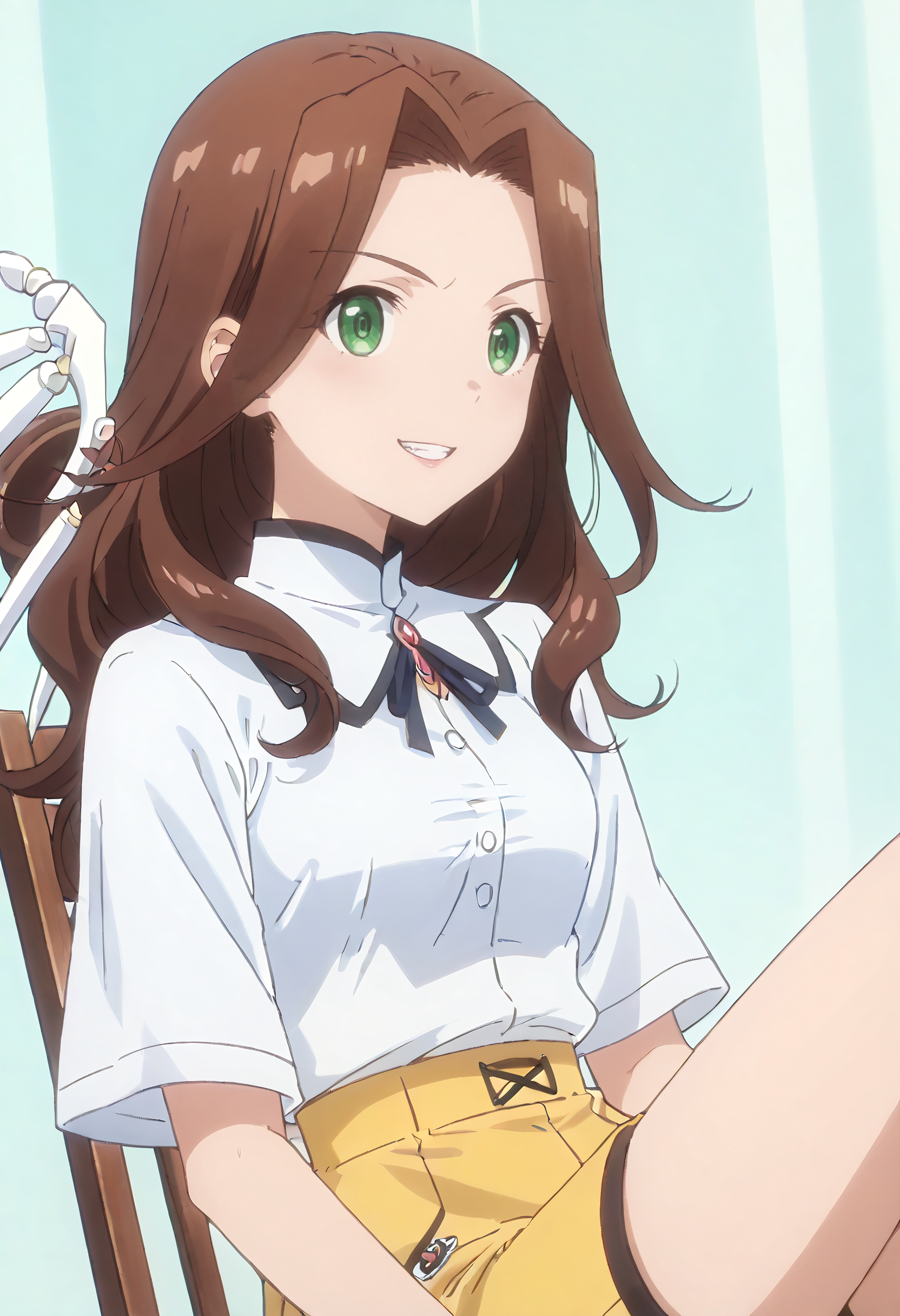 ISNAngel, 녹색 눈, 갈색 머리, 긴 머리, 머리카락이 흐르는 모습,