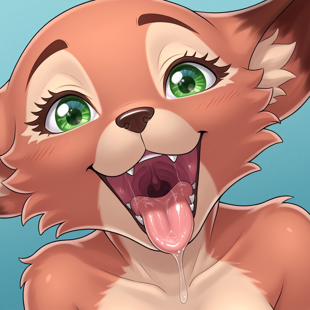 fox, fox girl, vulpera, orange and tan fur, green eyes, fox ears, brown nose, brown hands, brown feet, fox tail, medium breasts, shortstack,