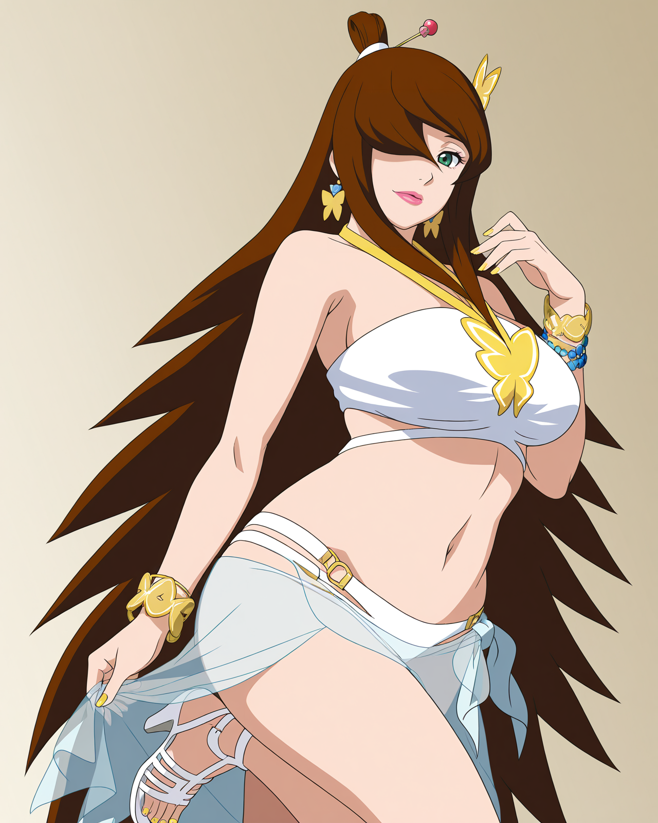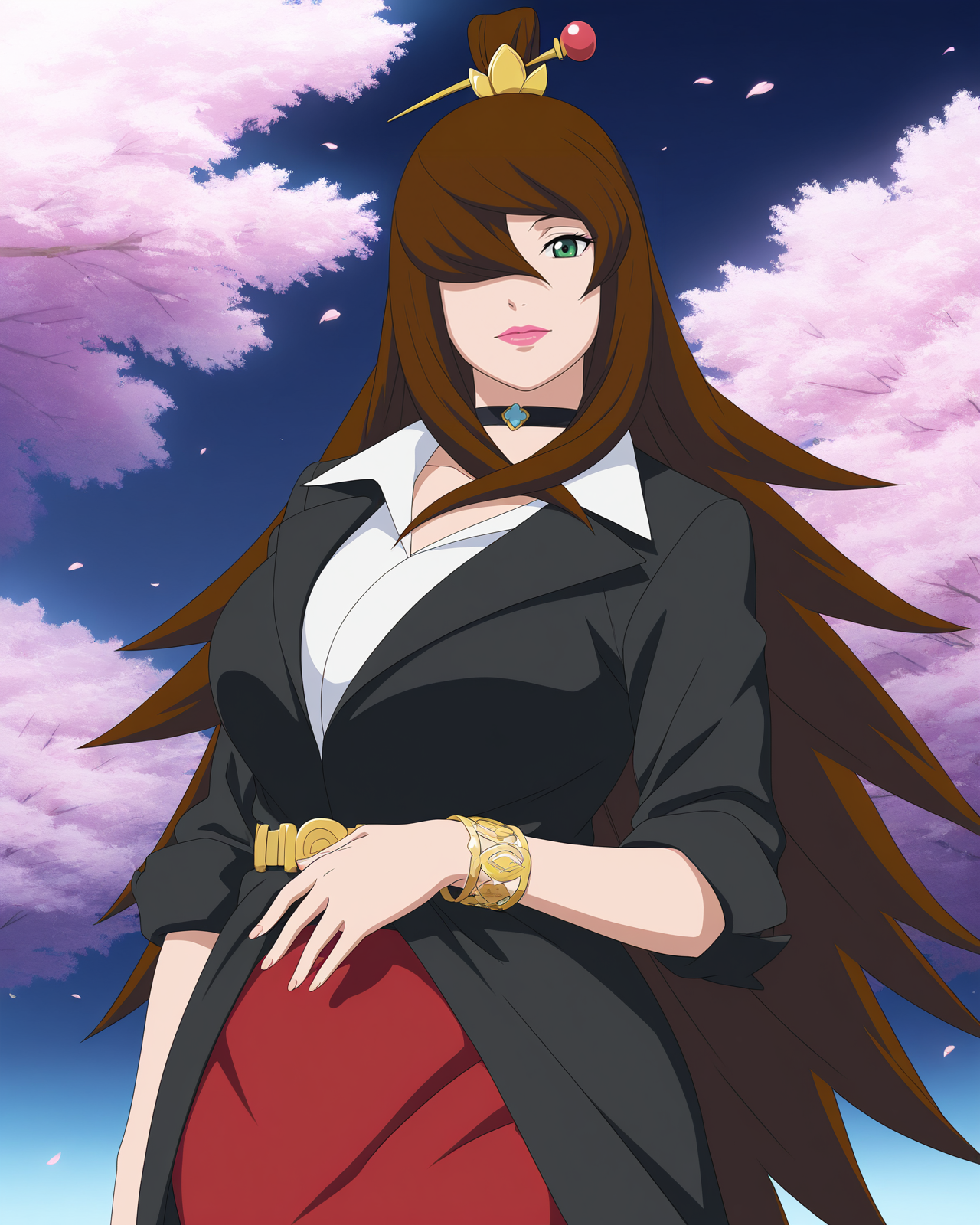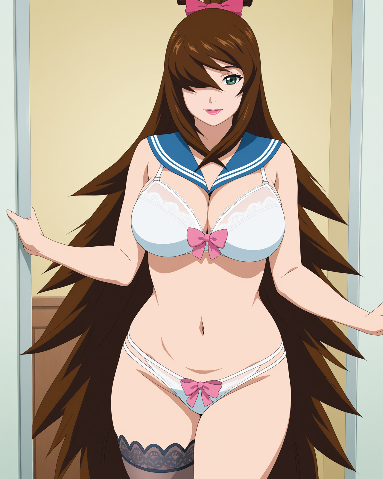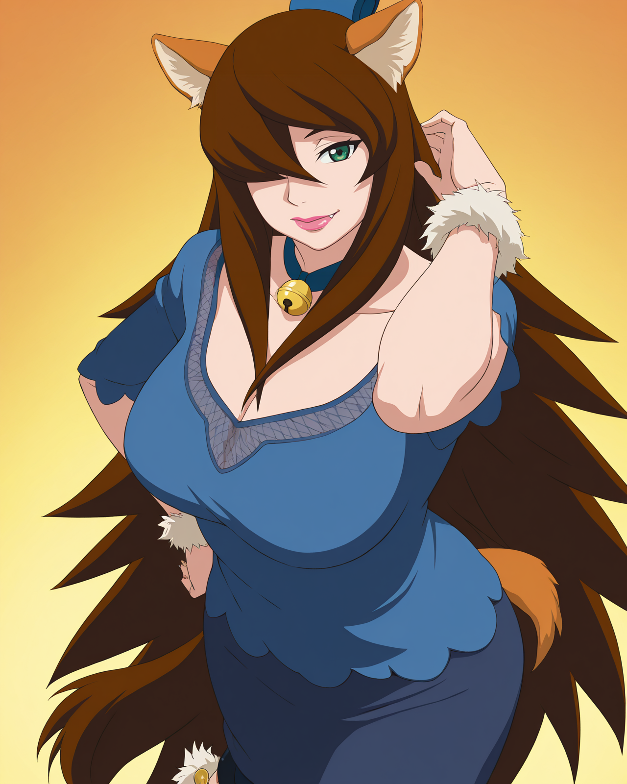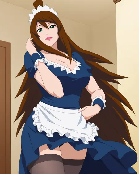 | 학습된 단어 | Mei, 1girl, solo, breasts, brown hair, cleavage, very long hair, green eyes, hair over one eye, high ponytail, makeup, lipstick, mature female복사됨! detached sleeves, belt, long sleeves, blue dress, white footwear, knee boots, side slit, fishnet pantyhose, off-shoulder dress, fishnet thighhighs, grey footwear, topknot, strapless, long dress, black underskirt, miniskirt복사됨! |