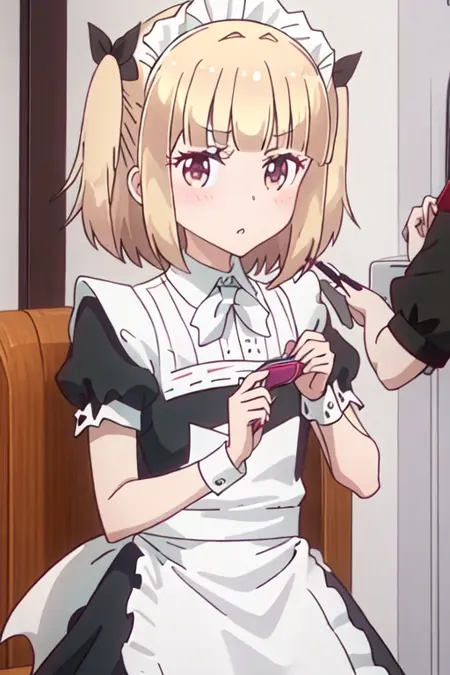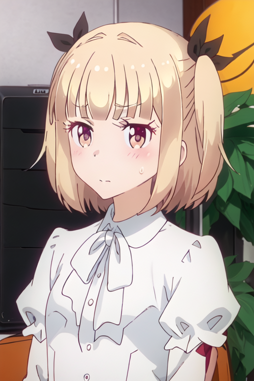 触发词为 iijima_yun_newgame,推荐标签为:best quality, masterpiece, highres, solo, {iijima_yun_newgame:1.15}, blonde_hair, short_hair, blush, two_side_up, ribbon, bangs, hair_ribbon。