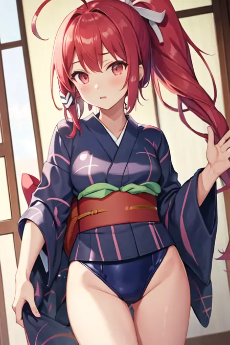 トリガー語はi_168_kantaicollectionで、推奨タグはbest quality, masterpiece, highres, solo, {i_168_kantaicollection:1.15}, long_hair, red_hair, ponytail, hair_ribbon, ribbon, red_eyes, swimsuit, serafuku, school_swimsuit, blush, one-piece_swimsuit, ahogeです。