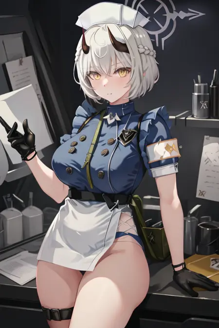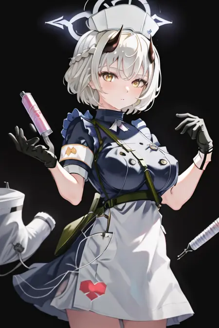트리거 단어는 sena_bluearchive이며, 축소된 태그는 horns, short_hair, halo, yellow_eyes, braid, breasts, hat, white_hair, nurse_cap, large_breasts, black_horns, grey_hair입니다. 어떤 특징(예: 머리색)이 불안정할 때 이 태그를 프롬프트에 추가할 수 있습니다.