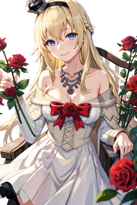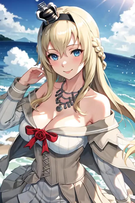 The trigger word is warspite_kantaicollection, and the recommended tags are best quality, masterpiece, highres, solo, {warspite_kantaicollection:1.15}, blonde_hair, long_hair, blue_eyes, braid, french_braid, hairband, crown, mini_crown, breasts, hair_between_eyes, smile, flower, large_breasts.