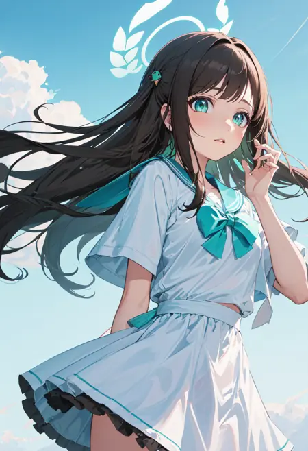 The trigger word is airi_bluearchive, and the pruned tags are long_hair, halo, green_eyes, brown_hair, hair_ornament, bow, black_hair, green_bow, green_halo. When some features (e.g. hair color) are not so stable at some times, you can add these them into your prompt.