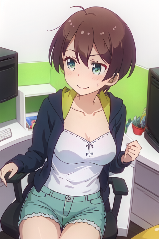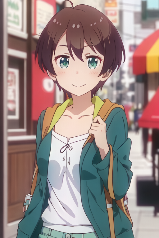 트리거 단어는 shinoda_hajime_newgame이며, 권장 태그는 best quality, masterpiece, highres, solo, {shinoda_hajime_newgame:1.15}, brown_hair, short_hair, green_eyes, blush, collarbone, smile입니다.