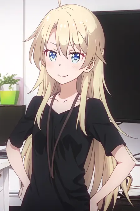 触发词为yagami_kou_newgame,推荐标签为:best quality, masterpiece, highres, solo, {yagami_kou_newgame:1.15}, blonde_hair, long_hair, blue_eyes, blush, collarbone, hair_between_eyes, ahoge, indoors, bangs, closed_mouth, smile。