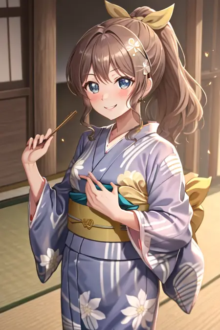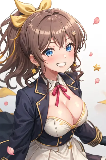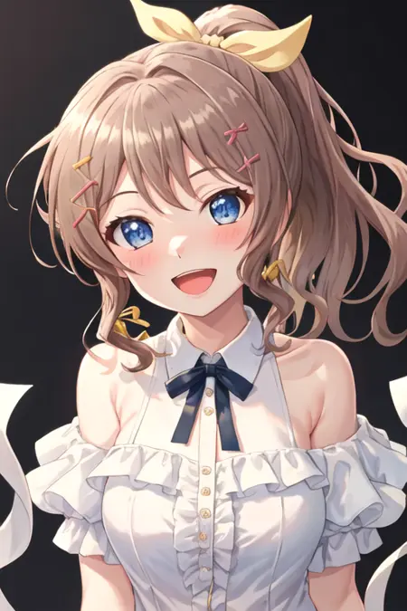トリガー語はyamabuki_saaya_bangdream、推奨タグはbest quality, masterpiece, highres, solo, {yamabuki_saaya_bangdream:1.15}, blue_eyes, brown_hair, ribbon, bangs, ponytail, sidelocks, hair_ribbon, smile, blush, yellow_ribbon, long_hairです。