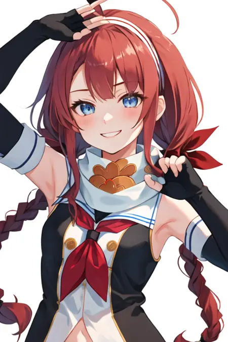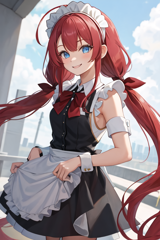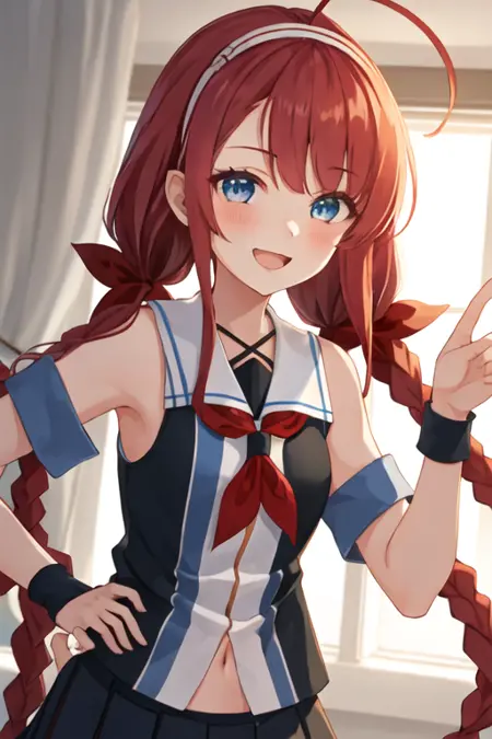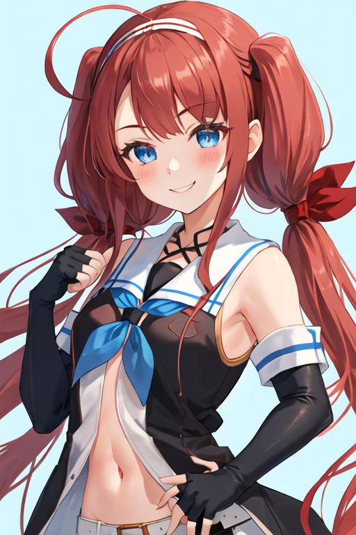 The trigger word is kawakaze_kantaicollection, and the recommended tags are best quality, masterpiece, highres, solo, {kawakaze_kantaicollection:1.15}, long_hair, red_hair, ribbon, hairband, hair_ribbon, bangs, ahoge, twintails, sidelocks, low_twintails, asymmetrical_bangs, very_long_hair, smile, blue_eyes, serafuku, sleeveless, hair_flaps.