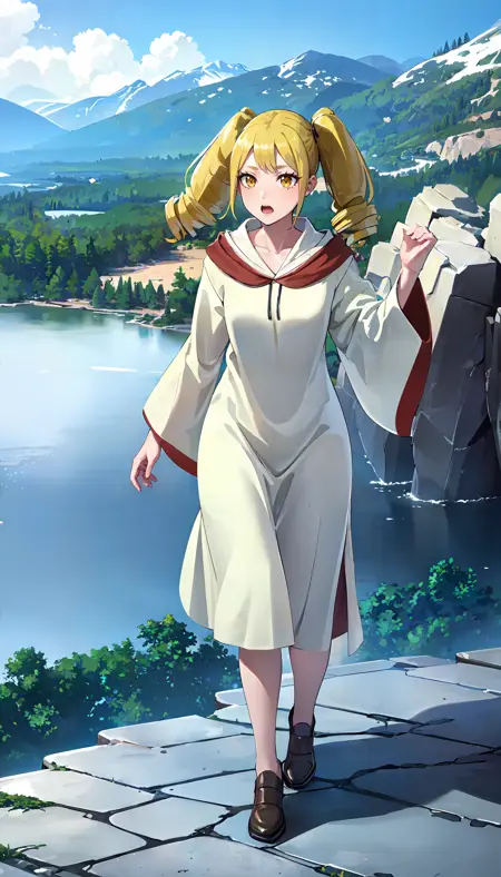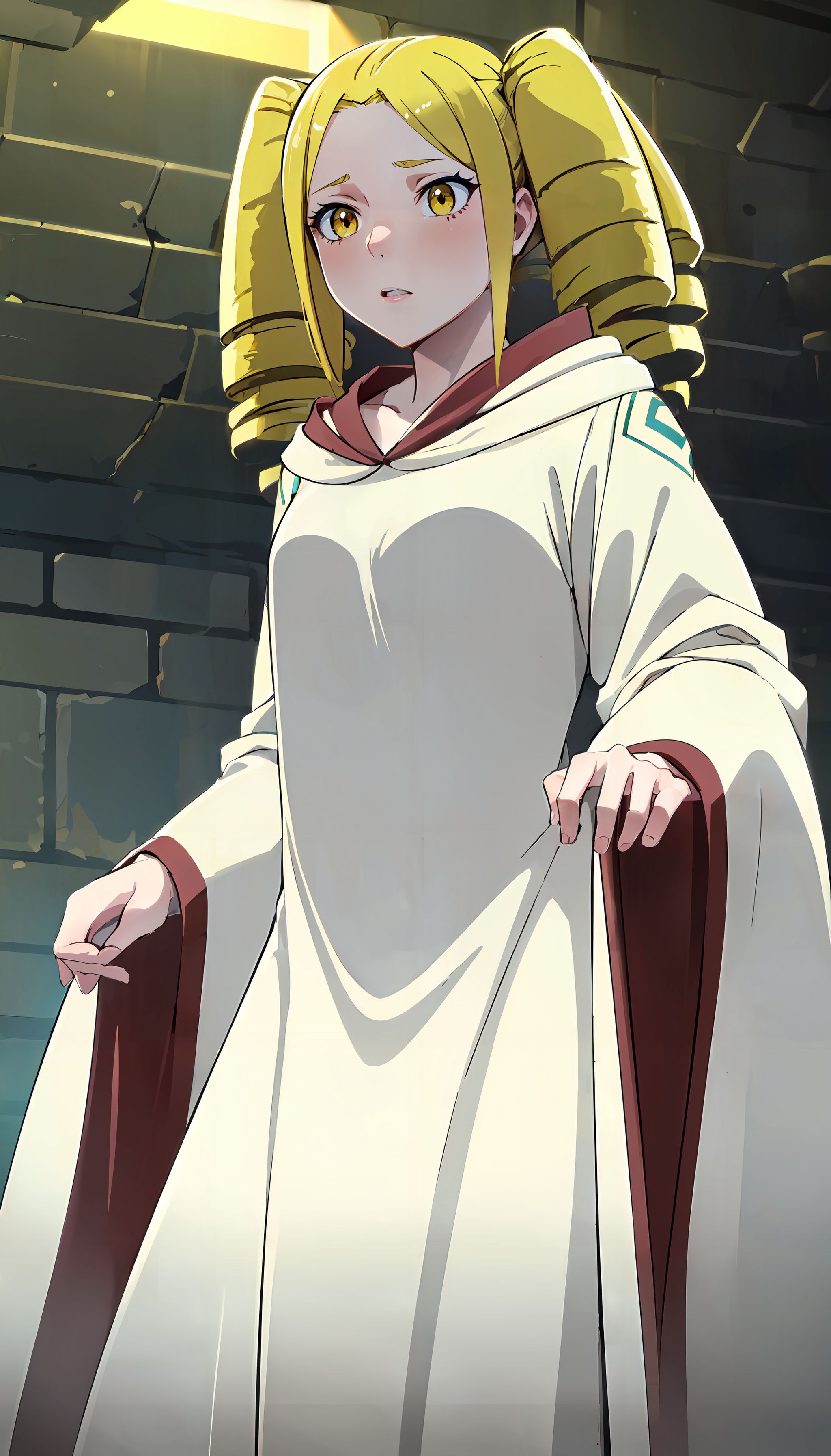 블론드 단발 트윈테일, 노란 눈, 흰 로브