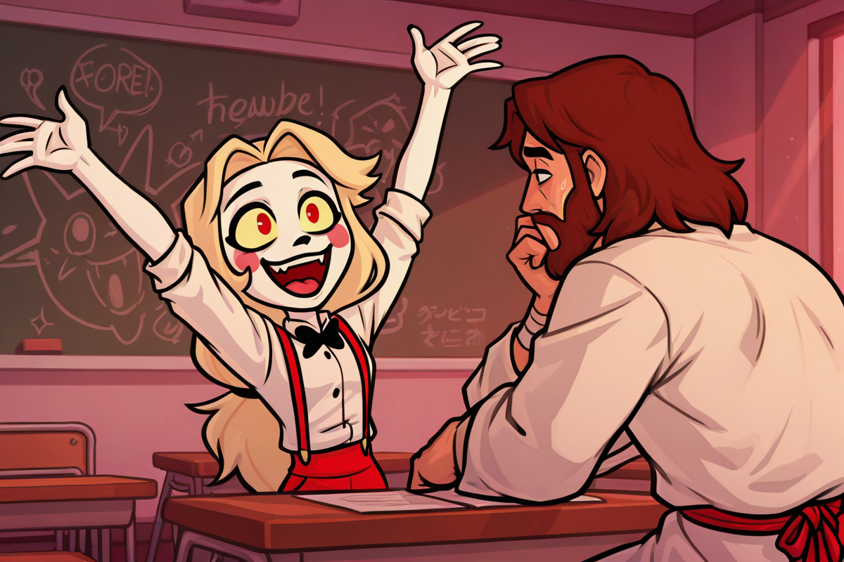 AabramsArt アーティストによる、唯一無二のイエス・キリストを描いた『Helluva Boss』パロディアニメーションのLoRA。