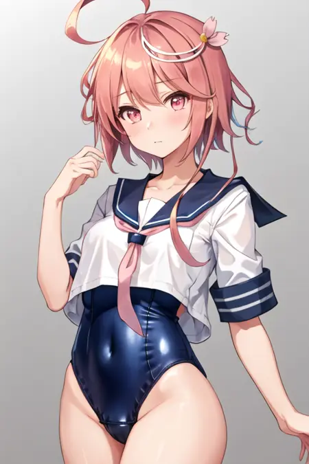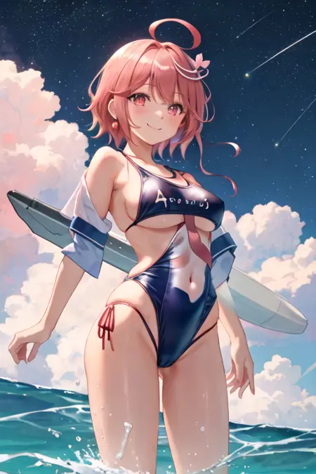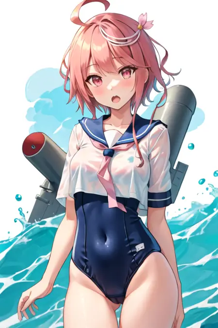 触发词为 i_58_kantaicollection,推荐标签为:best quality, masterpiece, highres, solo, {i_58_kantaicollection:1.15}, short_hair, pink_hair, hair_ornament, ahoge, pink_eyes, serafuku, swimsuit, blush, school_swimsuit, one-piece_swimsuit, red_eyes。