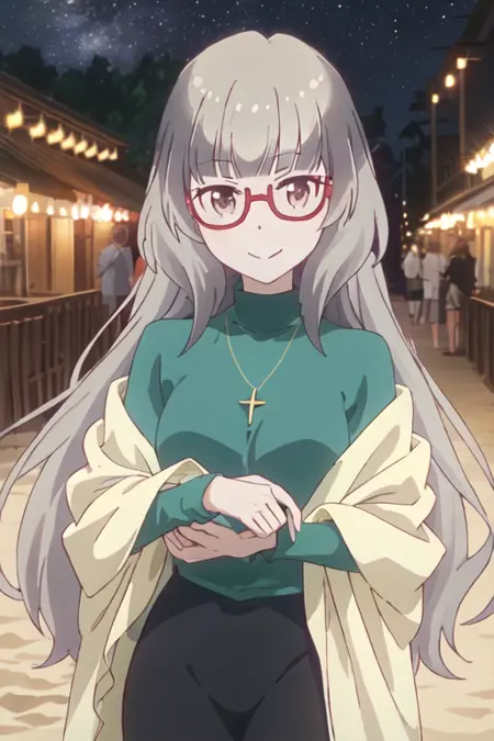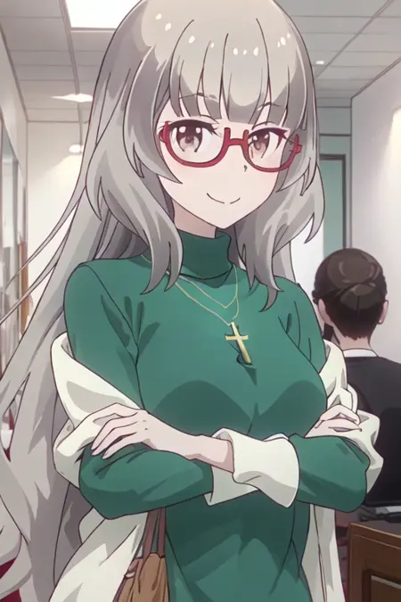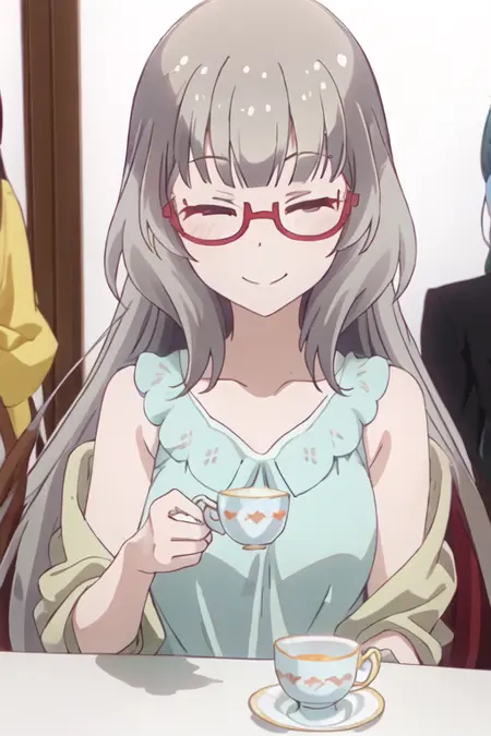 触发词为 hazuki_shizuku_newgame,推荐标签为:best quality, masterpiece, highres, solo, {hazuki_shizuku_newgame:1.15}, glasses, long_hair, red-framed_eyewear, grey_hair, bangs, semi-rimless_eyewear, smile, under-rim_eyewear, closed_mouth, brown_eyes, blunt_bangs。