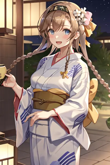 The trigger word is teruzuki_kantaicollection, and the recommended tags are best quality, masterpiece, highres, solo, {teruzuki_kantaicollection:1.15}, long_hair, braid, twin_braids, headband, light_brown_hair, hair_ornament, brown_hair, propeller_hair_ornament, blue_eyes, breasts, blush, open_mouth, hachimaki, serafuku, grey_eyes, black_headband, smile, hairband.