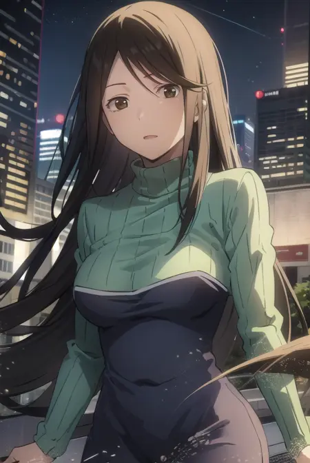 나미에 야기리, 긴 머리, 검은 머리, (갈색 눈:1.3), (빗어낸 앞머리:1.5),