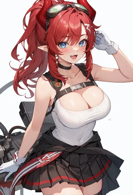 - The pruned character tags are red hair, horns, breasts, demon horns, long hair, blue eyes, ponytail, large breasts, halo, pointy ears, hair ornament, red horns, tail, demon tail, goggles on head, fang. You can add them into prompts when core features (e.g. hair color) of character is not so stable.