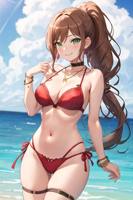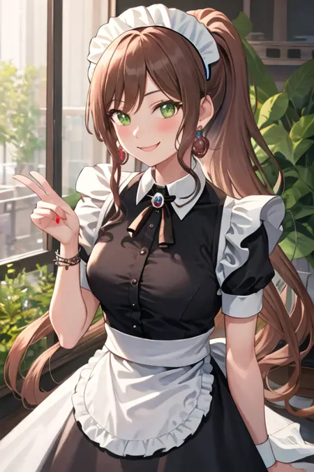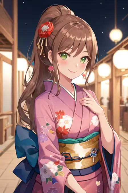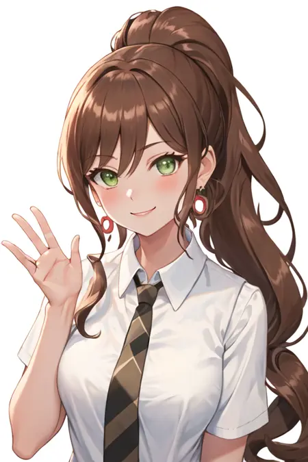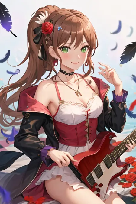 触发词为imai_lisa_bangdream,推荐标签为:best quality, masterpiece, highres, solo, {imai_lisa_bangdream:1.15}, brown_hair, long_hair, bangs, smile, jewelry, green_eyes, earrings, blush, ponytail, sidelocks。