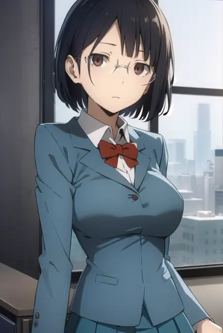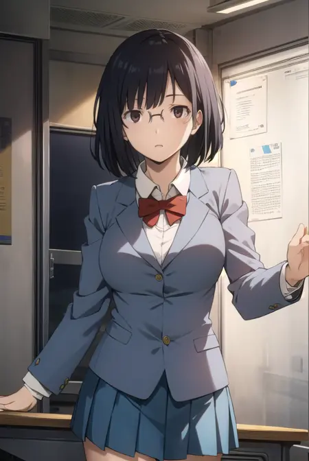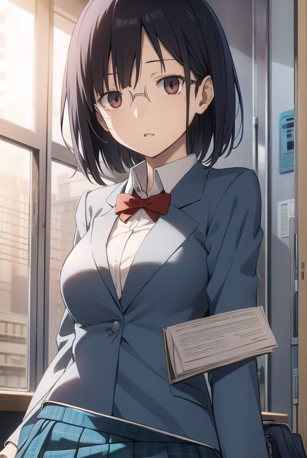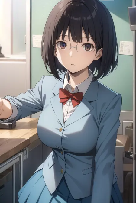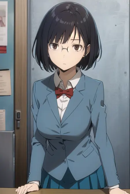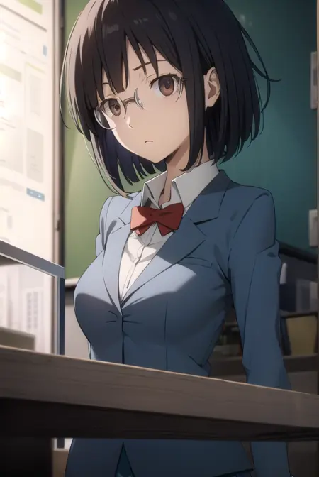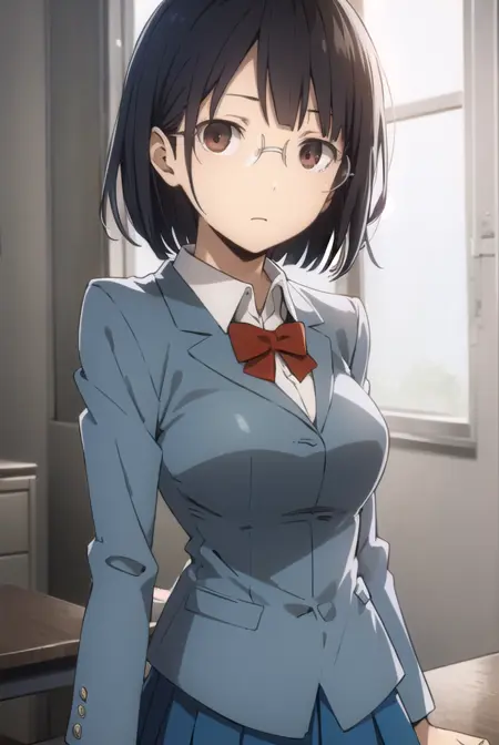 安里园花,短发,黑发,(棕色眼睛:1.3),眼镜,鲍伯头,