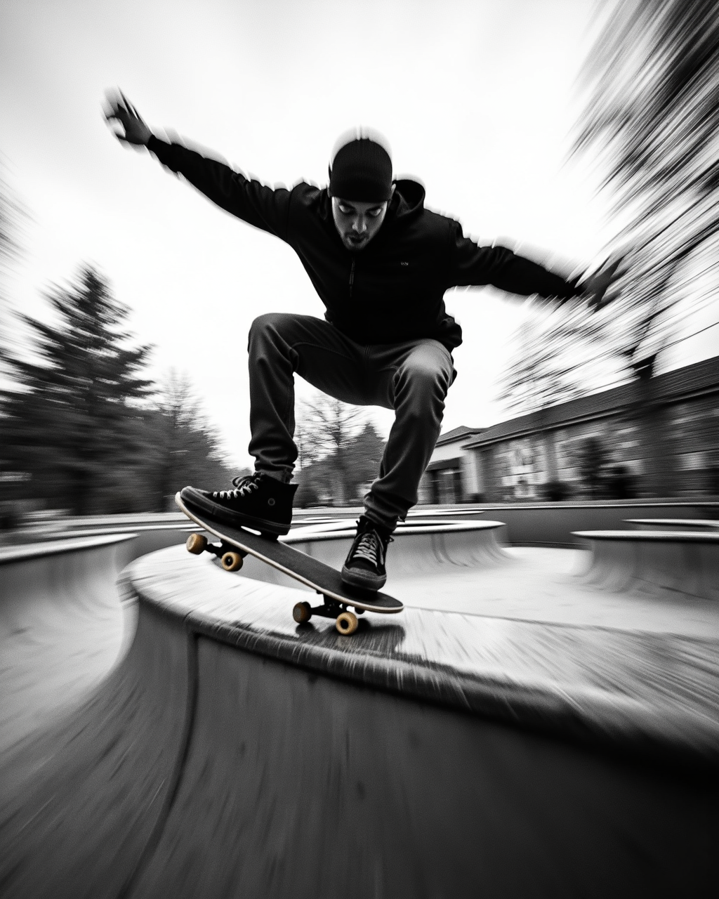被写体を鮮明に保ったまま、ズームブラー/放射状ブラー効果を生成します。このLoRAは白黒写真のみで学習しており、カラー写真でのテストは行っていません。
