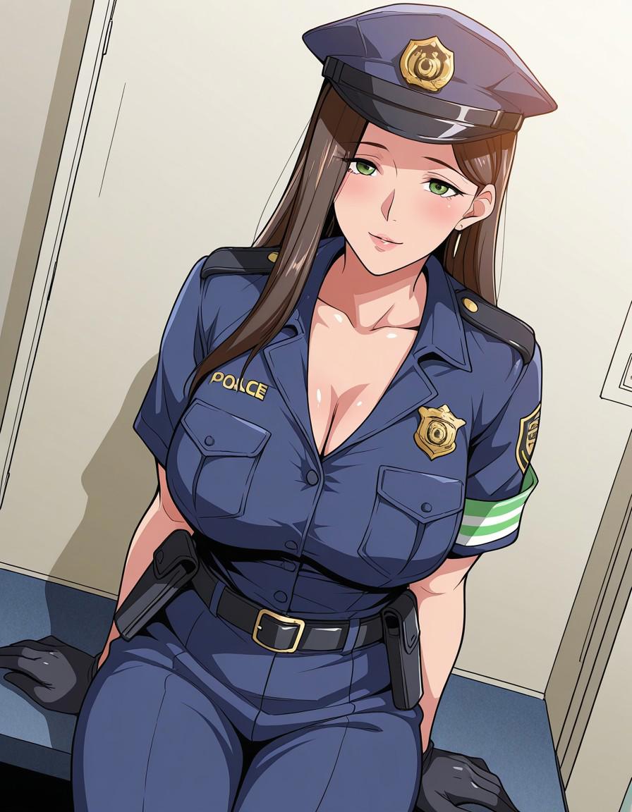 Yukie_Mizusawa-ill, green_eyes, brown_hair, earrings, lips, jewelry, mature_female, long_hair, cleavage