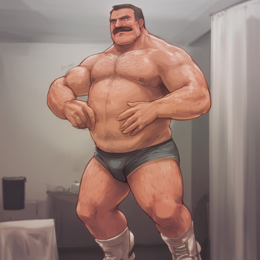 お腹の大きいカートゥーン風ダディモデル;トリガー語「BIG」;「DADDY」;「MACHO」.... お楽しみください
