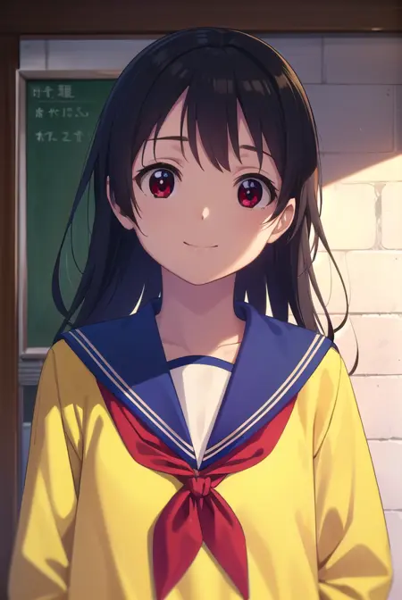 inari fushimi, long hair, black hair, (red eyes:1.3),