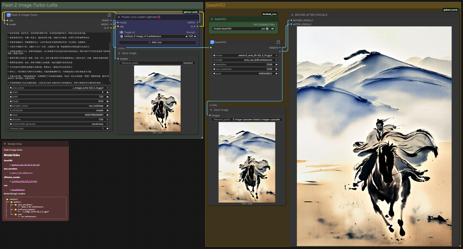 Flash Z-Image-Turboは、ZITおよびSEEDVR2の両方でGGUFバージョンを使用して速度を確保します。