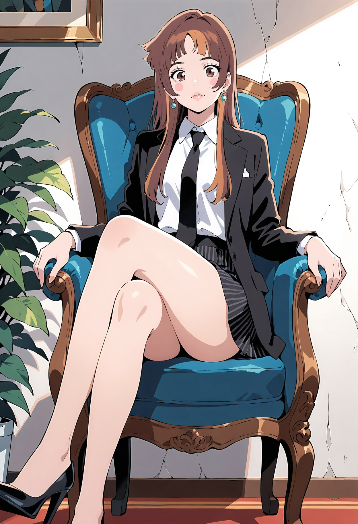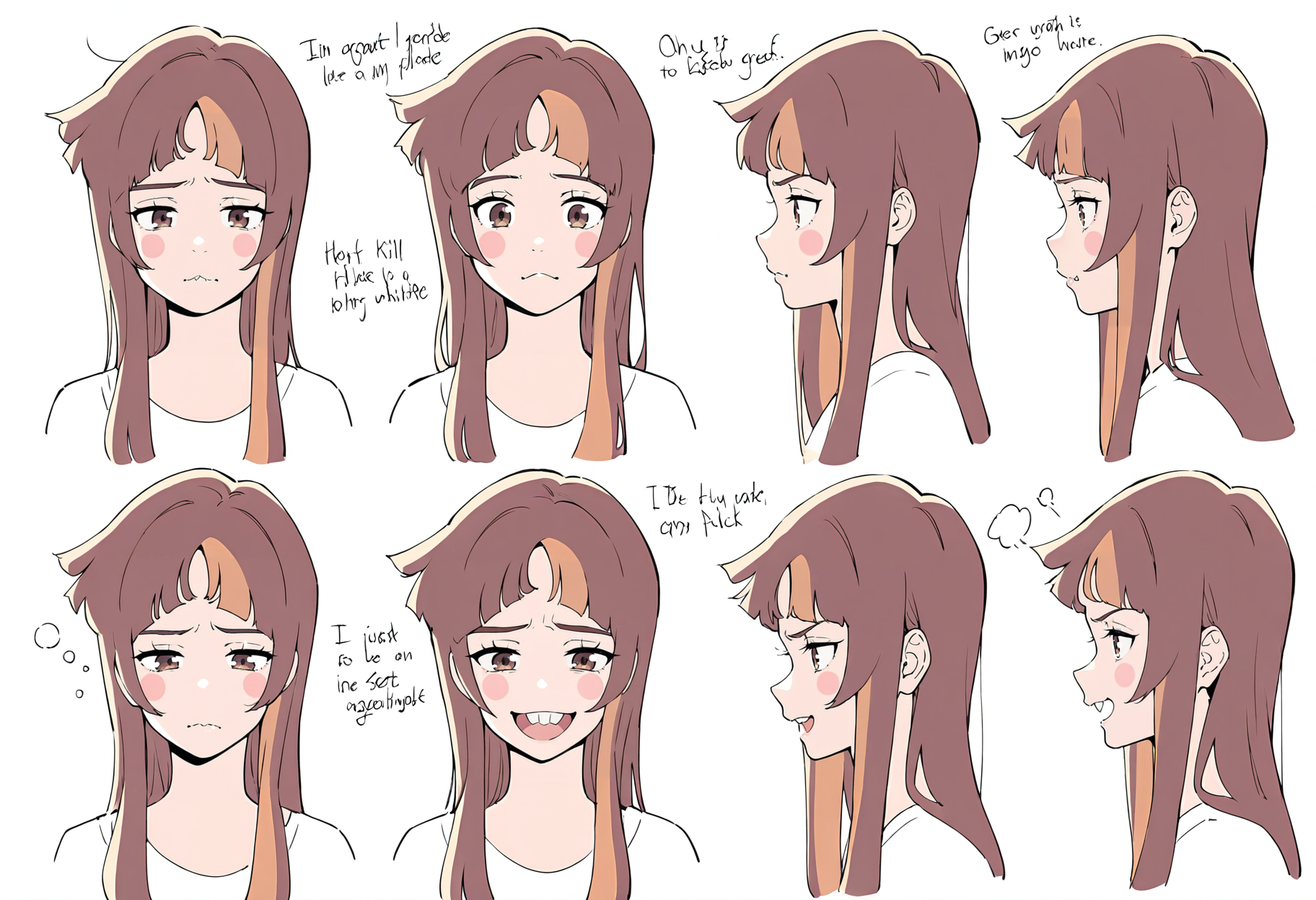 1girl、茶色の髪、茶色の目、長い髪、複色の髪、前髪、まっすぐな前髪、頬のステッカー、出っ歯