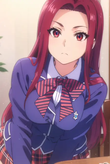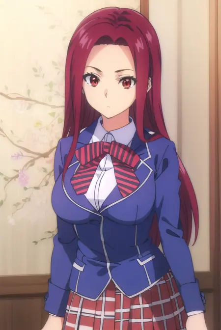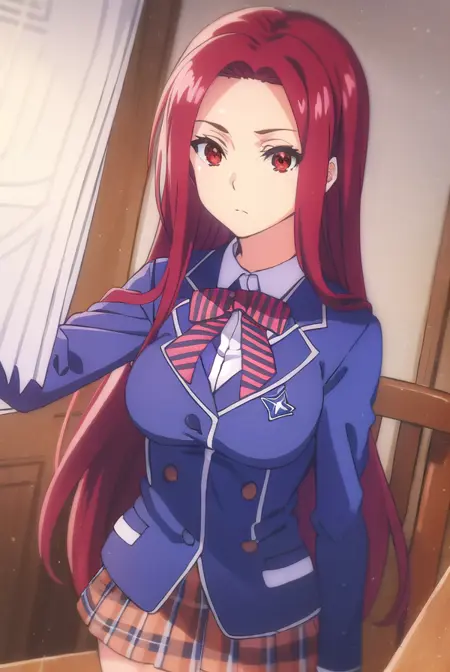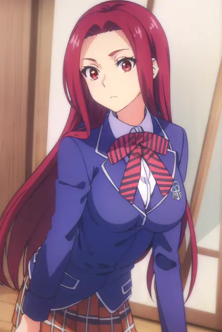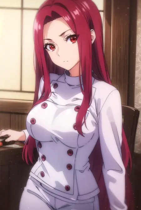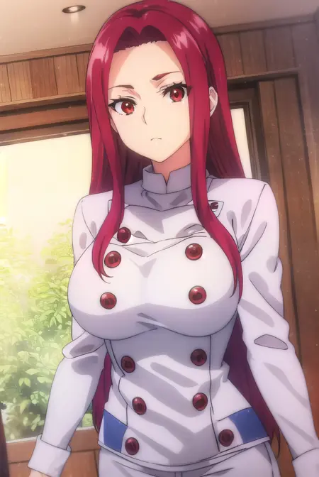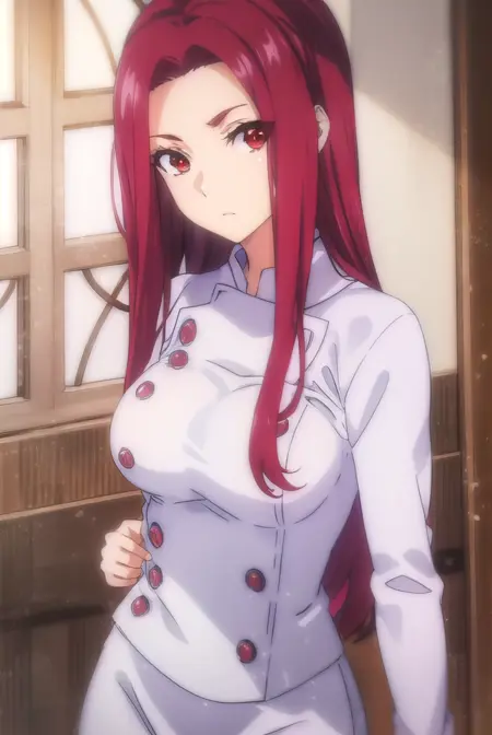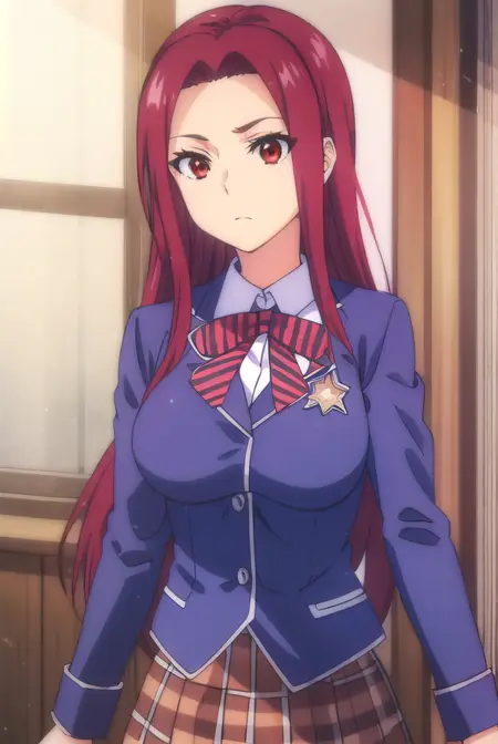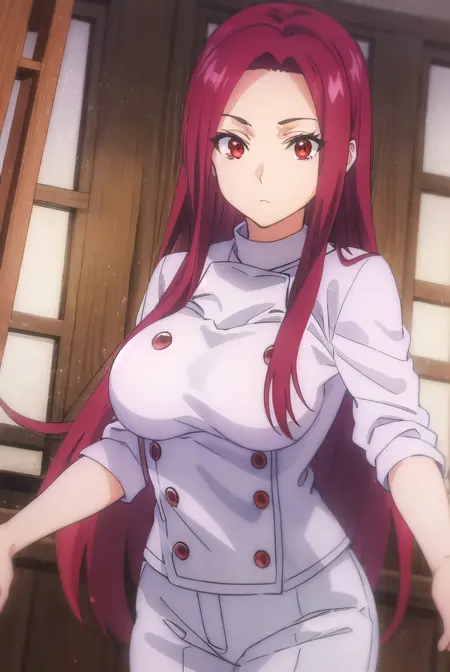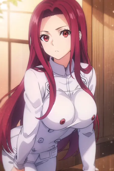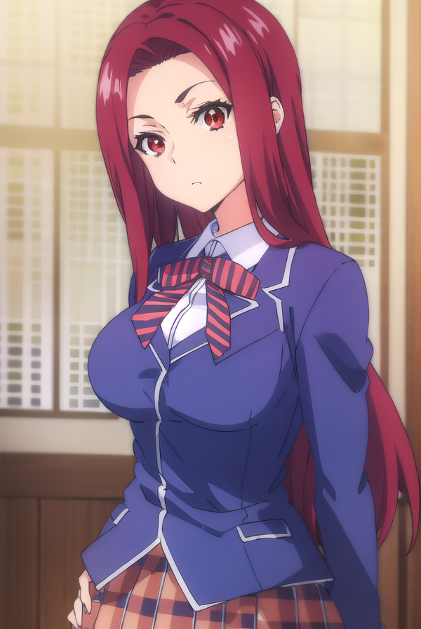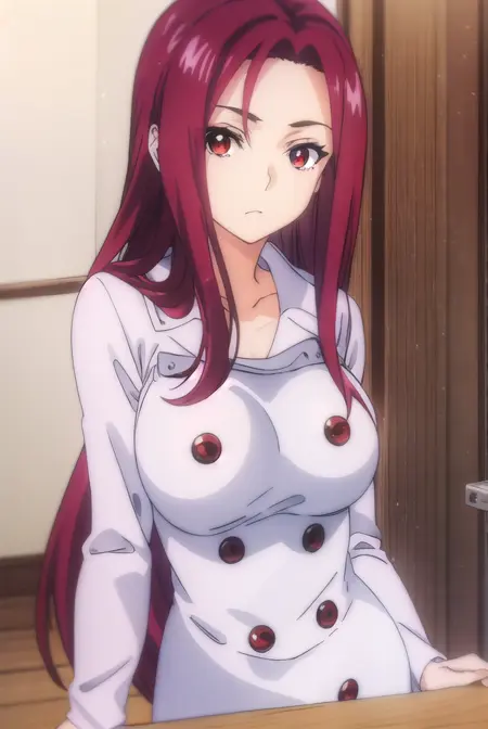 ryouko sakaki, 긴 머리, (빨간 눈:1.3), 빨간 머리, (이마:1.2),