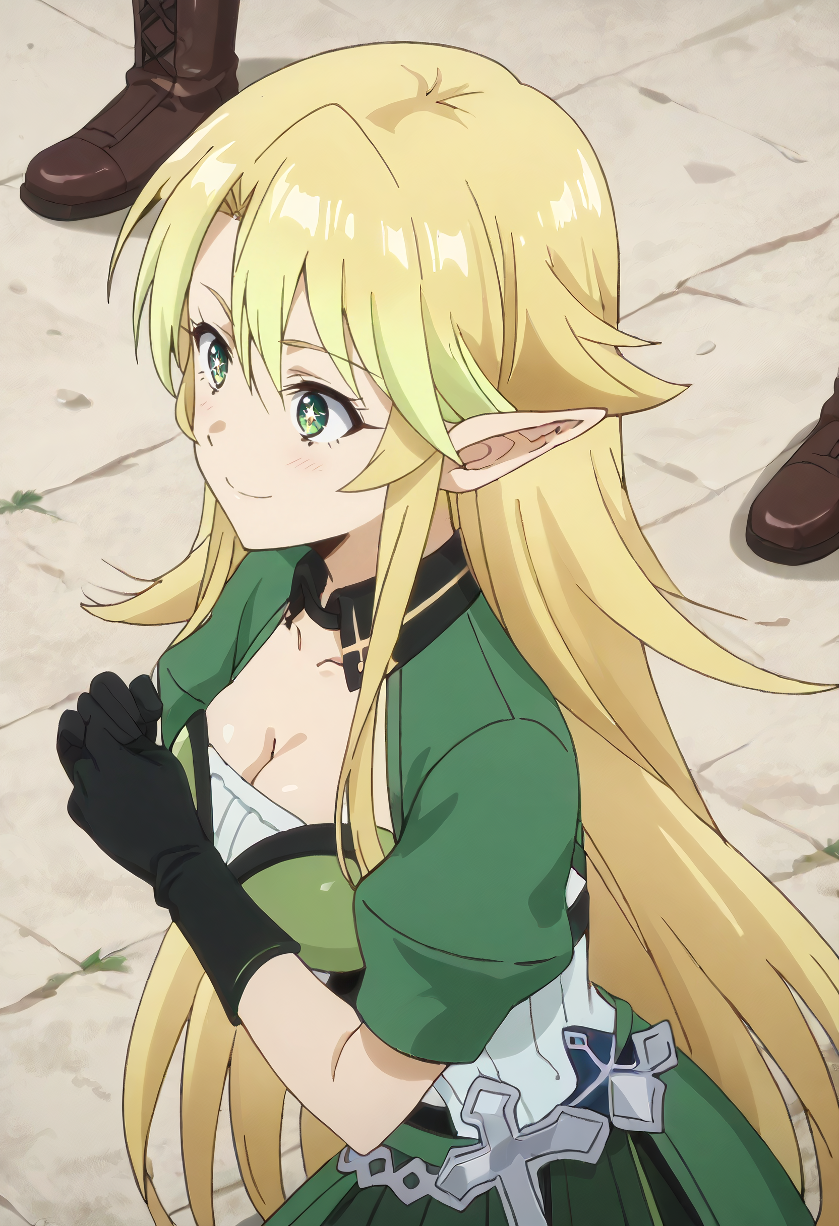 ISNSofia, 금발, 긴 머리, 뾰족한 귀, 엘프, 녹색 눈, 눈 사이의 머리카락, 매우 긴 머리, 옆머리, 긴 뾰족한 귀,