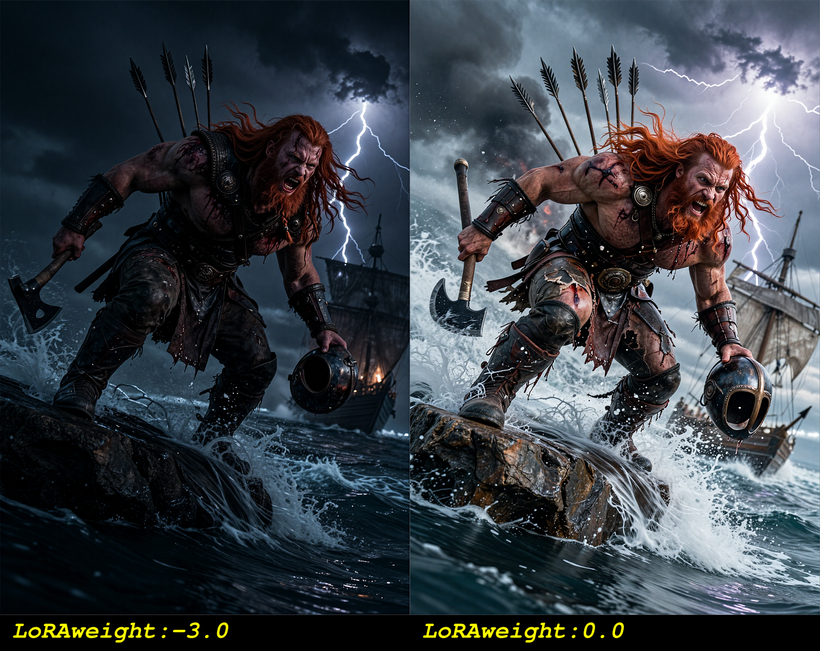 非常に雰囲気のあるシーンを作成したい場合、このLoRAは非常に適しています。激しい映画のシーンでも…