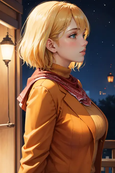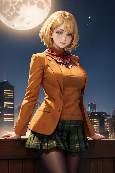 • 리메이크 외모를 원하면 "green eyes, red neckkerchief, orange jacket, orange sweater, green miniskirt, pantyhose"를 추가하세요.