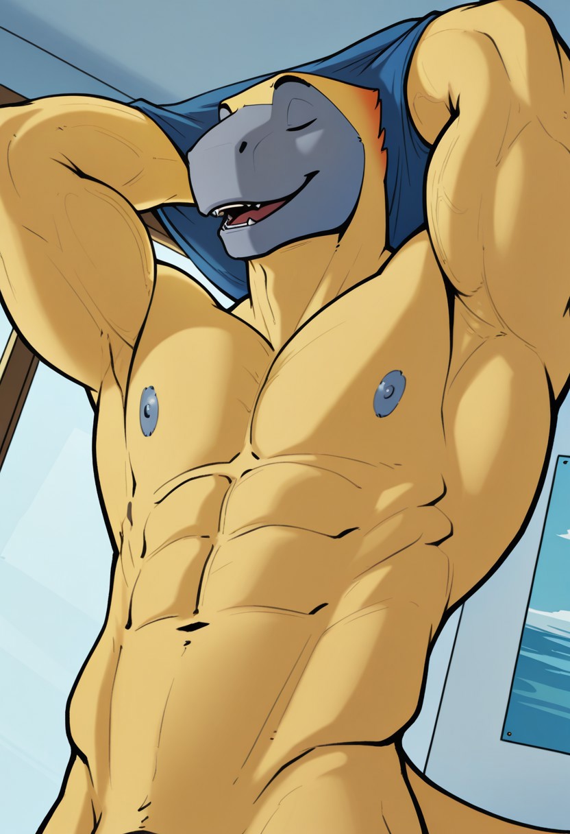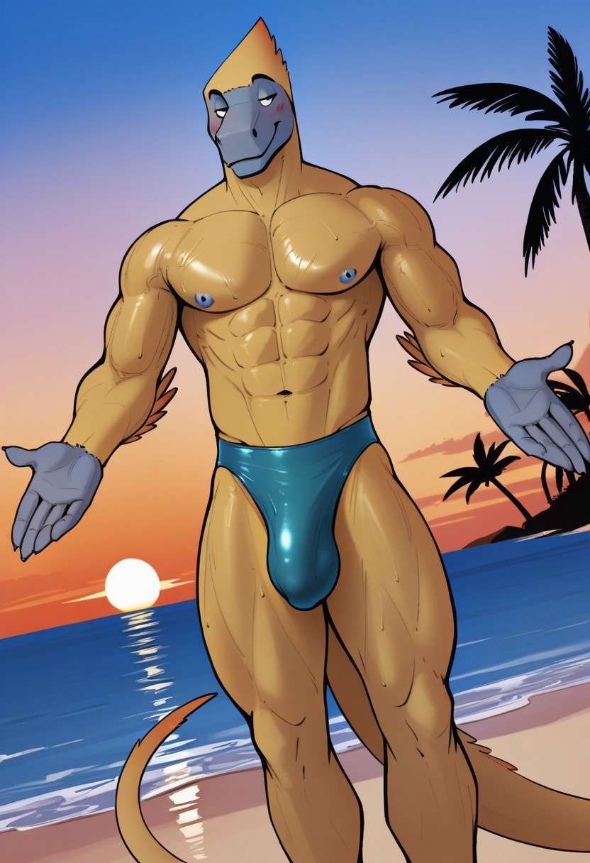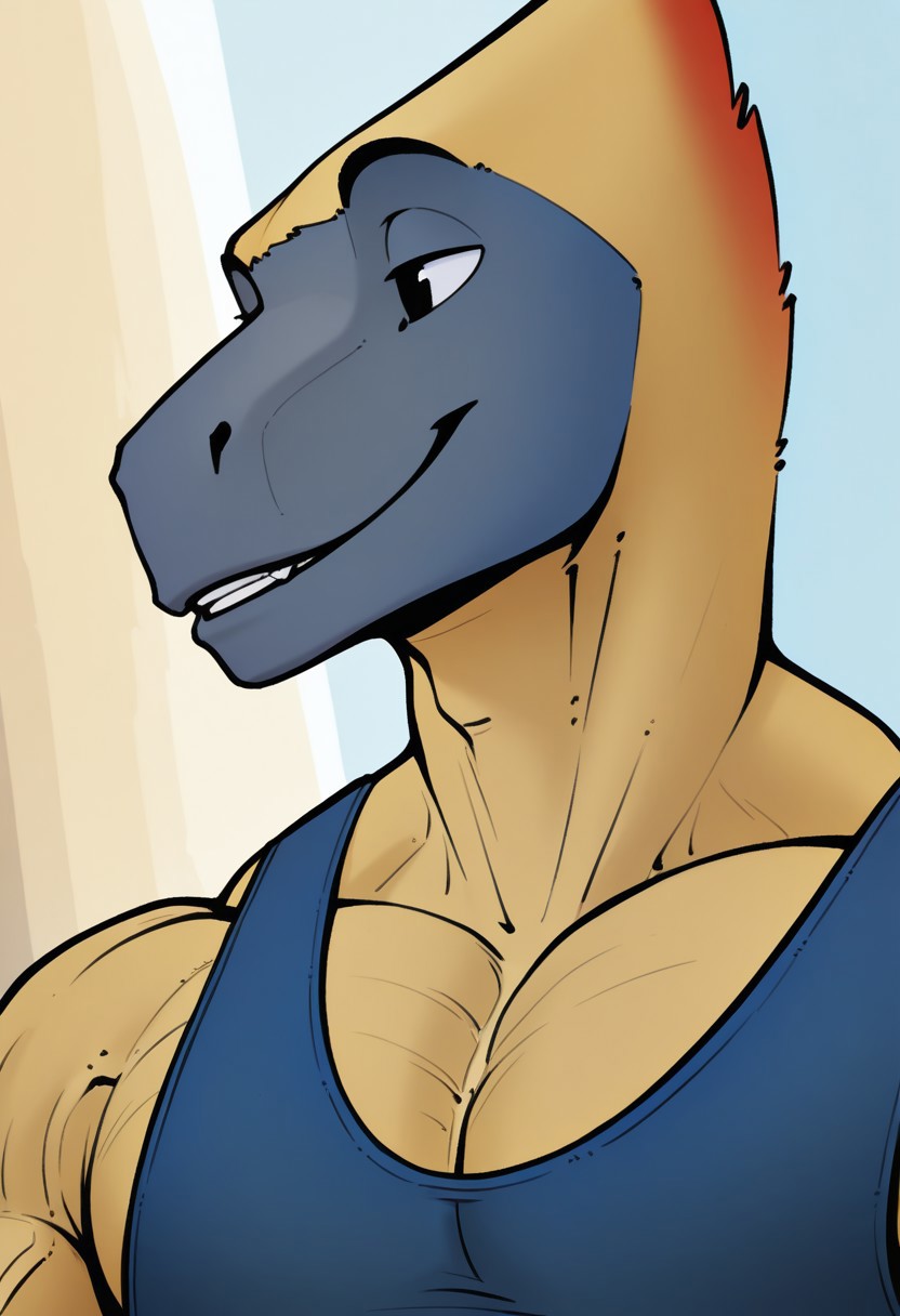 • 强化提示:“毛茸茸的雄性、鳞片状、迅猛龙、迅猛龙尾巴、黑色眼睛、黄色皮肤”