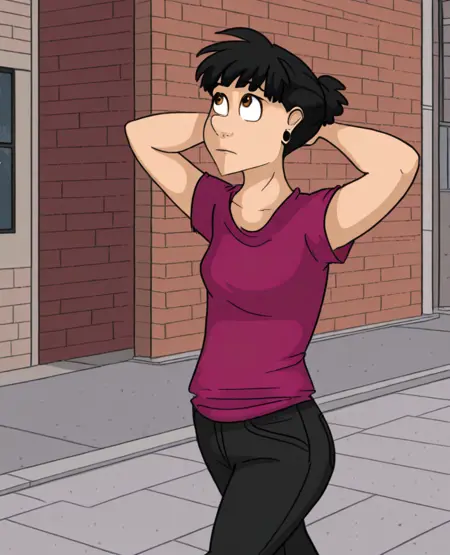 추천 태그: 검은 머리, 갈색 눈. 그녀는 긴 머리나 짧은 머리, 앞머리 또는 머리결에 다양한 헤어스타일과 길이를 가지고 있다. "귀에 고리"도 잊지 말 것. 추가로 "커피숍 배경" 태그를 붙이면, 적어도 두려운 커피의 색상 체계를 따르길 바란다.