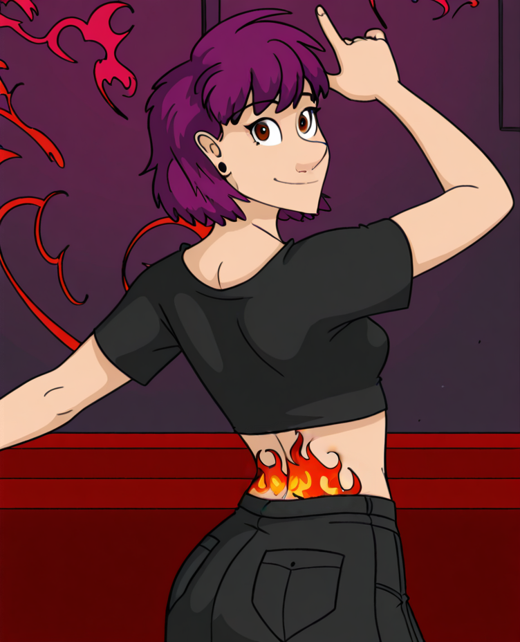 그 안에 있지만 표현하기 어려운 요소는 그녀의 "허리 아래 문신"과 "불꽃 허리 아래 문신"이다. 이 문신에 대한 공식 이미지가 매우 적고, 대부분의 팬아트에서는 이를 빠뜨린다. 그래도 어느 정도는 표현되지만, 이 특정 세부 사항을 정확히 구현하려면 외부 자료가 도움이 될 수 있다.