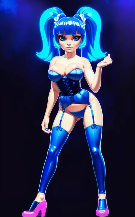 她的服装2:过膝袜,露乳,蓝色过膝袜,蓝发,内裤,蓝色内裤,蓝色紧身胸衣**