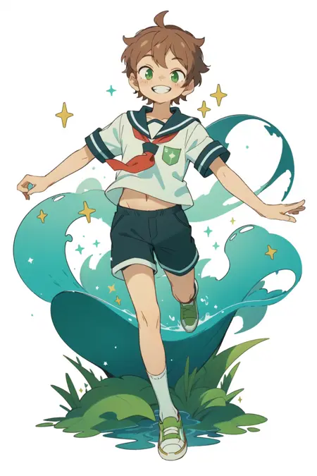 다시 안녕하세요! 이 캐릭터는 월드 트리거의 미도리카와 신입니다. 저는 이 데이터셋을 그의 보더 복장으로 학습시켰기 때문에 잘 인식하지만, 원하는 옷을 프롬프트로 입력하면 모델이 잘 반응한다는 것을 알게 되었습니다. 색상에 약간의 편향이 있지만, LoRa를 0.8로 낮추거나 CFG를 약간 조정하면 금방 개선됩니다. 곧 흰 트랙복 복장에 초점을 맞춘 이미지를 사용한 두 번째 버전을 업로드할 예정입니다.