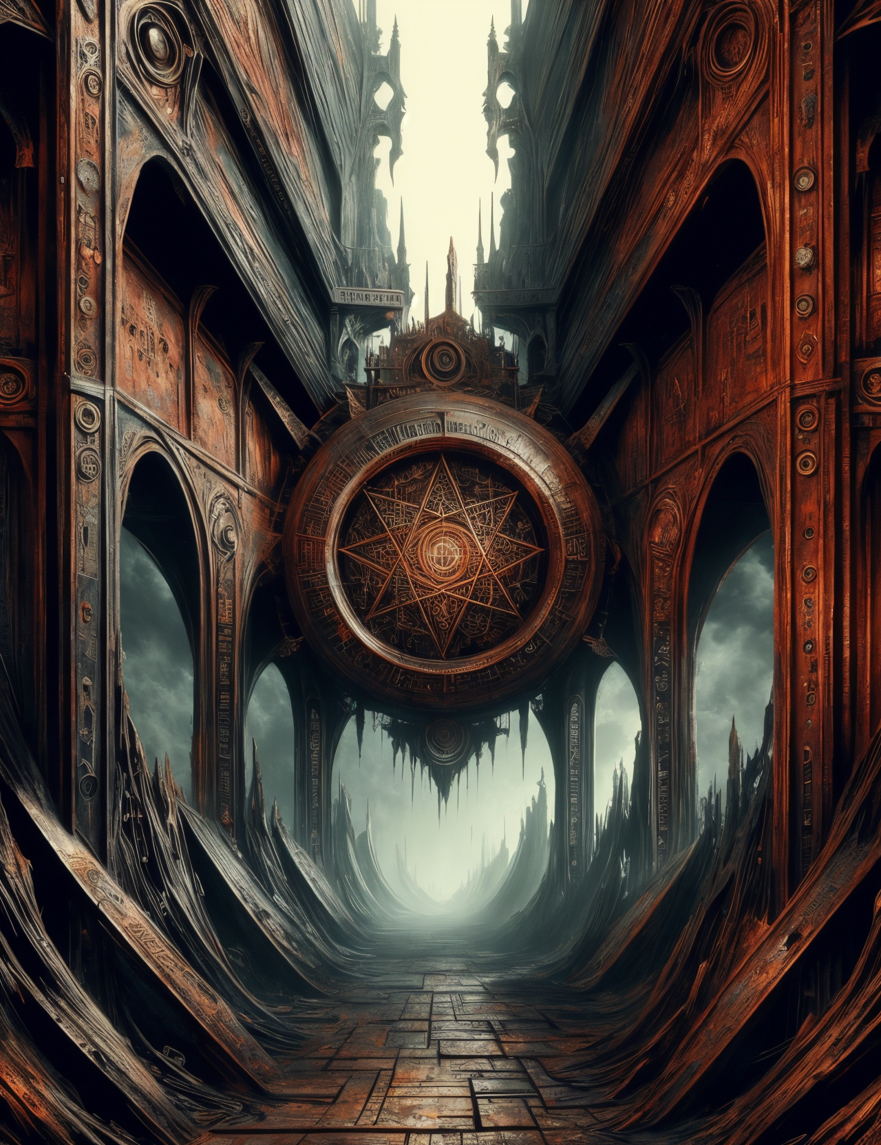 在一个锈蚀的世界中,时间在每一处表面刻下它的故事,古老的符文如同被遗忘魔法的回响般闪烁——这是对一个如今被氧化记忆封存的逝去时代的无声见证。