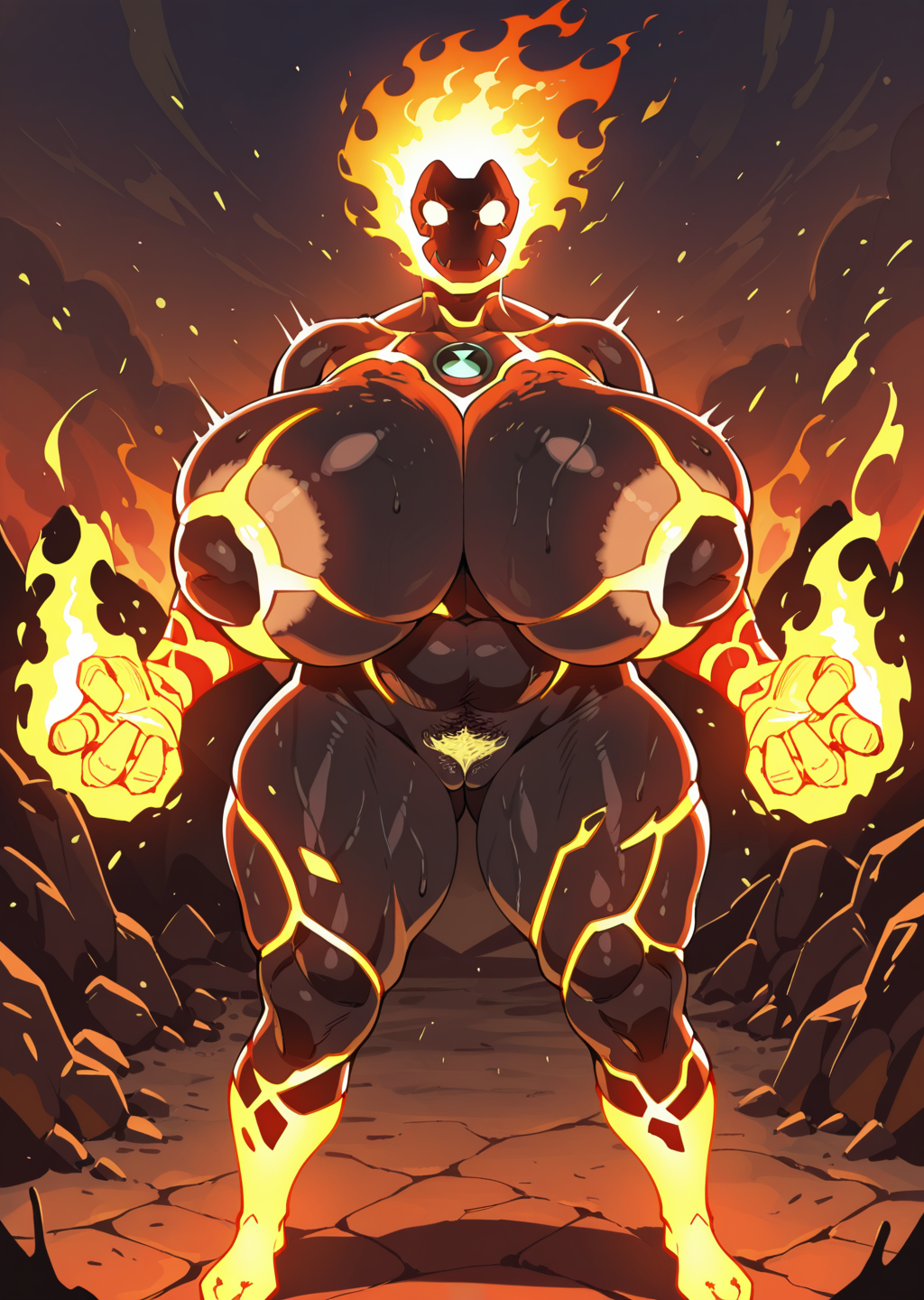 オプションのプロンプト: 女性の陰毛、陰毛、巨大な胸、ふっくらした