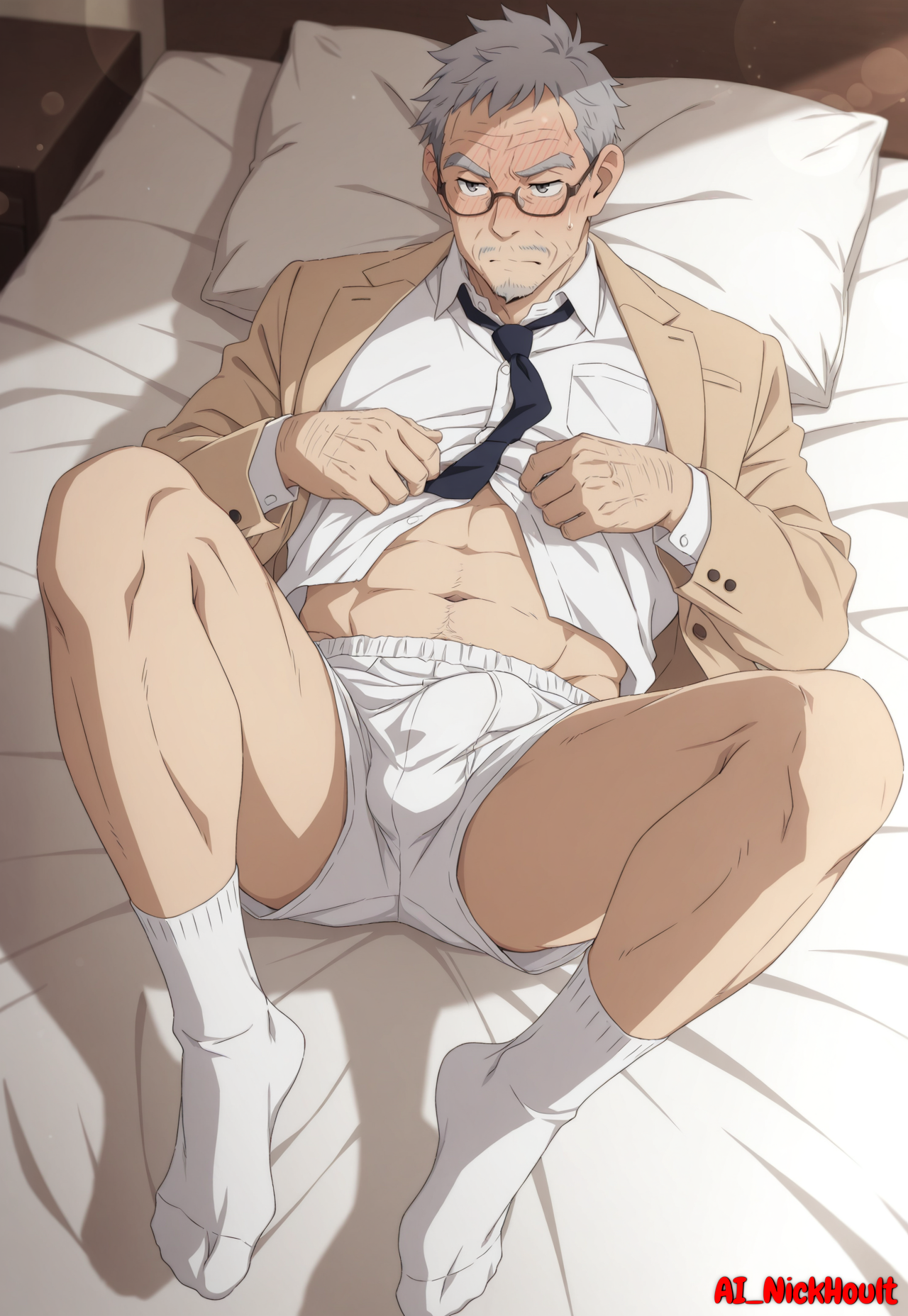 Chosuke_Nakamoto, gray hair, gray eyes, facial hair, old man, wrinkles, short hair,