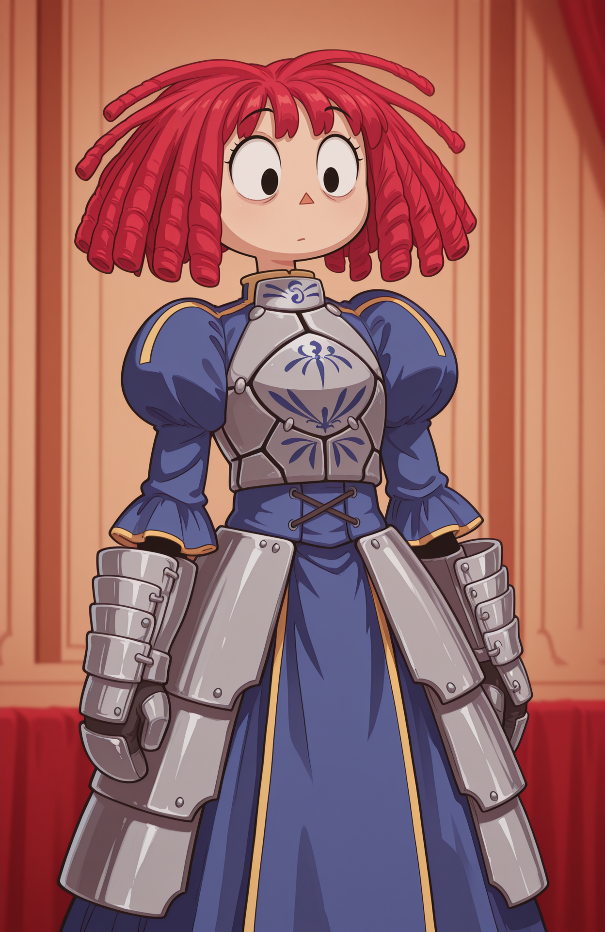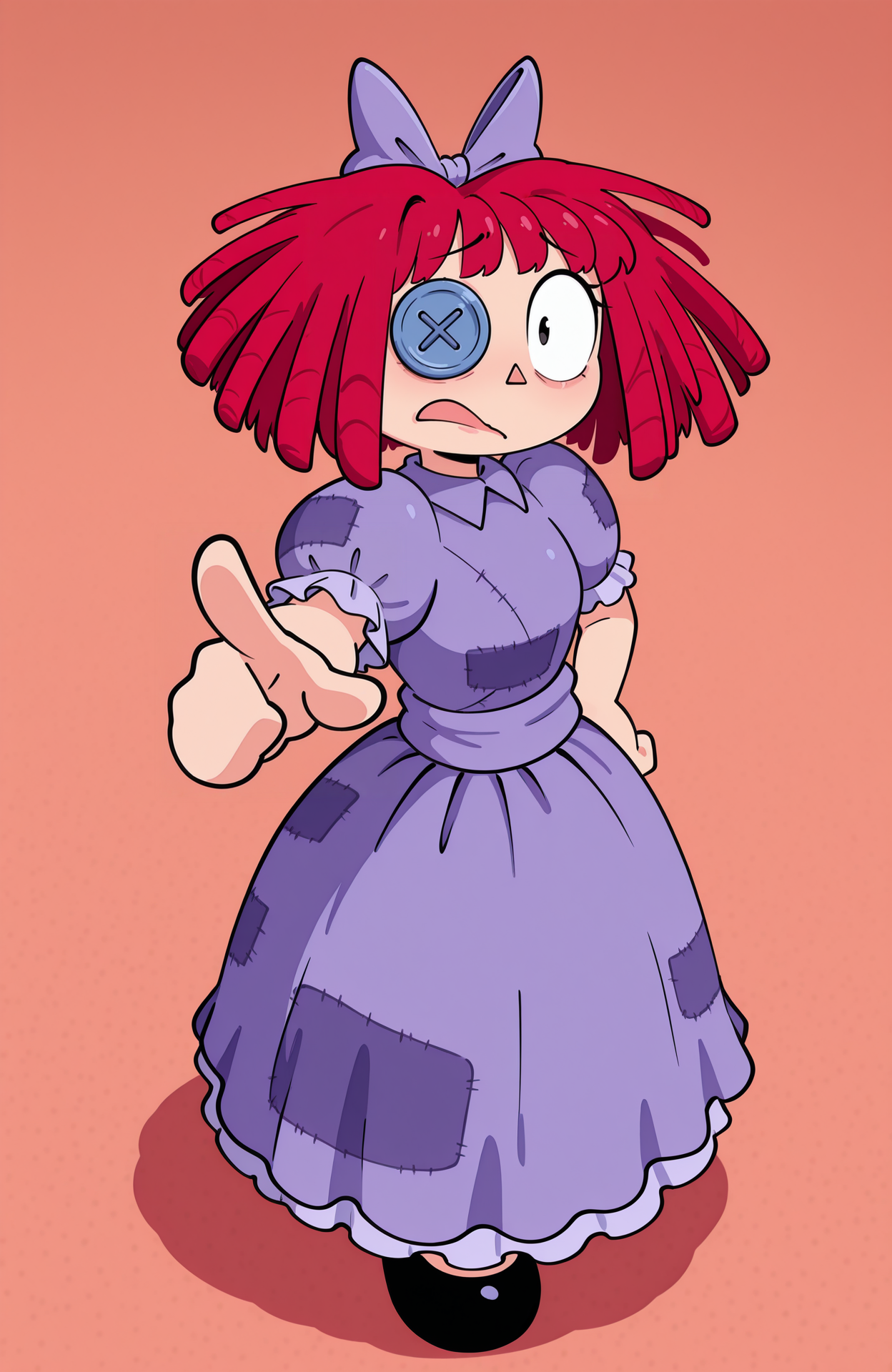purple dress, frilled dress, puffy short sleeves, long dress, black shoes