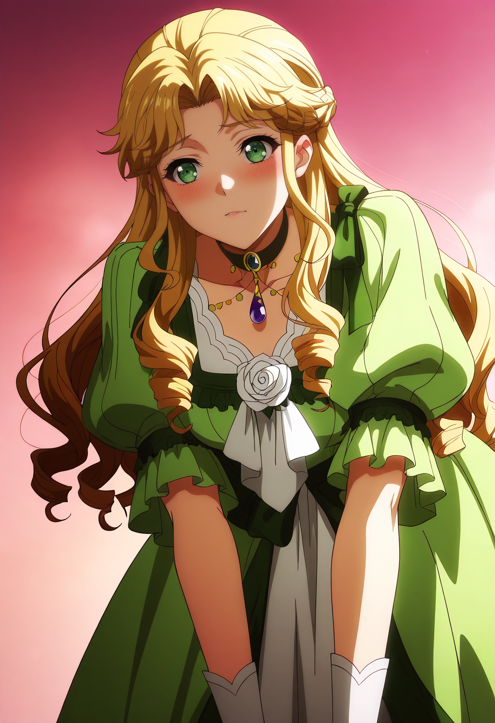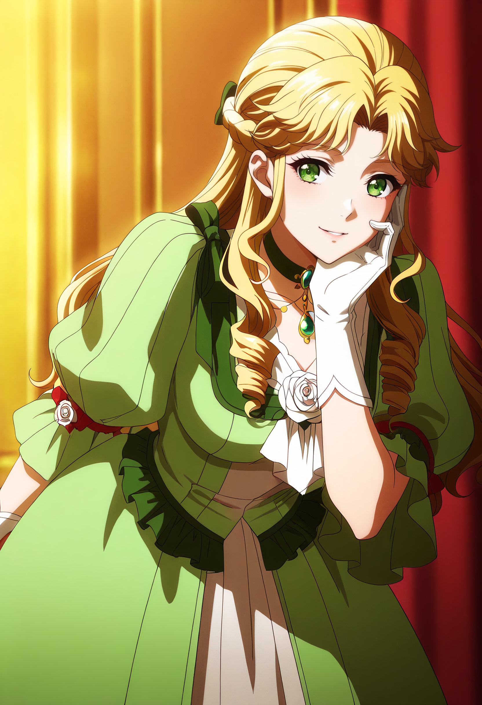 AudreyOutfit, 녹색 드레스, 드레스, 꽃, 장미, 초커, 풍성한 소매, 보석, 녹색 초커, 보석, 리본, 녹색 보석, 풍성한 짧은 소매, 가운, 장갑, 목걸이, 흰 장갑, 빅토리아 스타일, 긴 드레스, 주름진 드레스,