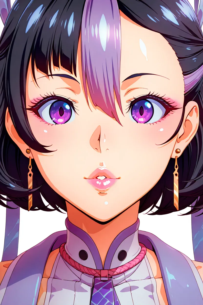 | トレーニングワード | 1girl, Syuen, purple_eyes, earrings, jewelry, black_hair, multicolored_hair, two-tone_hair, bangs, ribbon, bow, hair_bow, purple hair, lips, glossy_lips, thick_lips, huge_breasts, 2020_anime_art_style, hi-res, HD, superb_quality, anime coloring, clear animationコピーしました! |