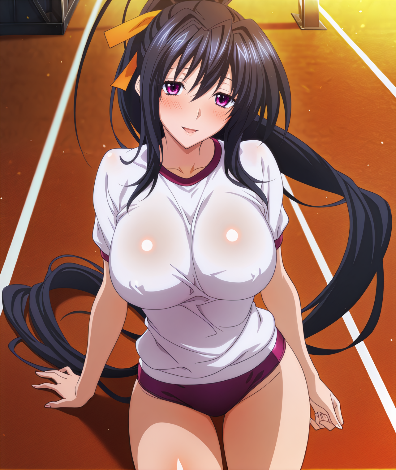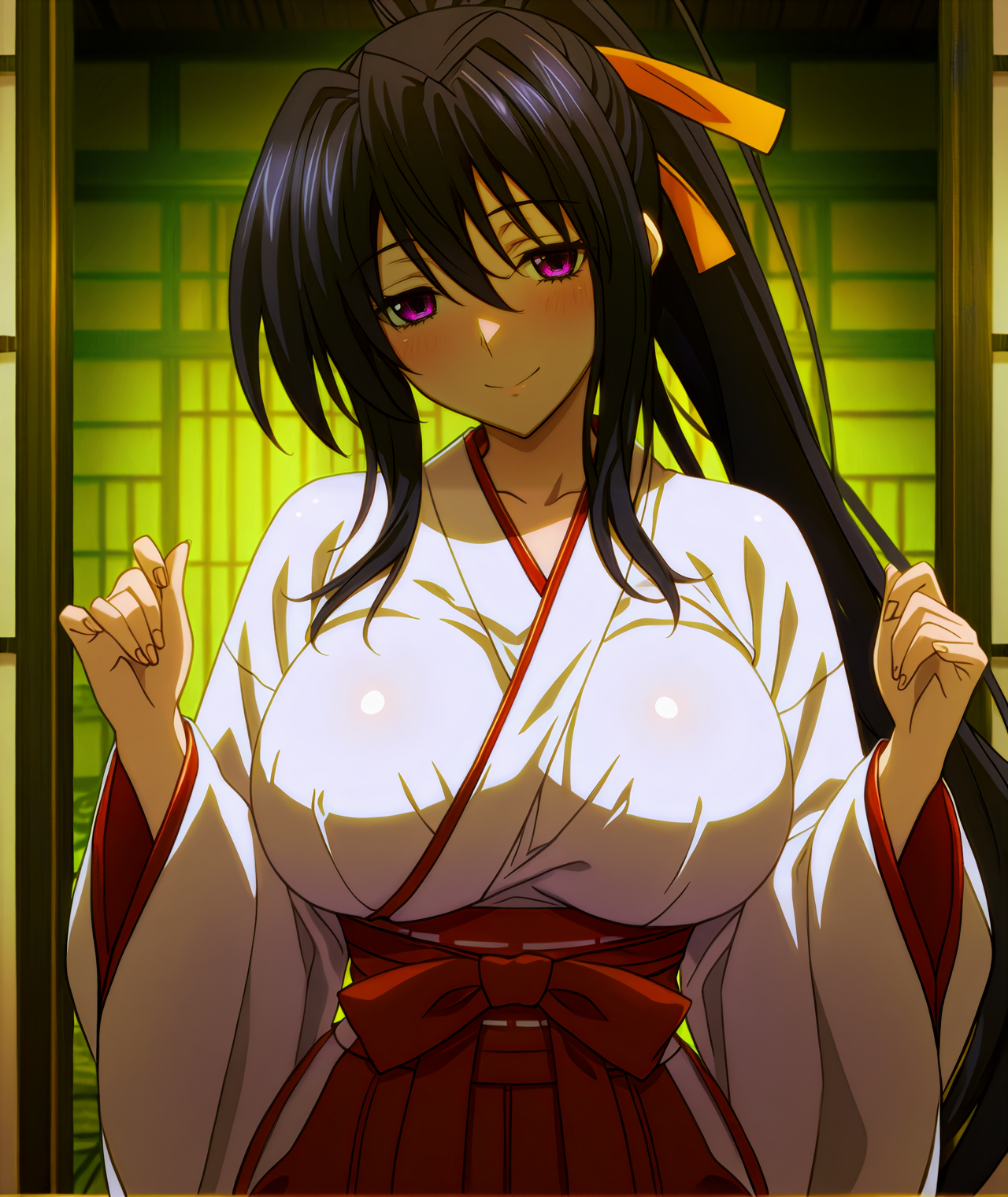akenohimejimadxd, 1girl, solo, long hair, black hair, purple eyes, large breasts