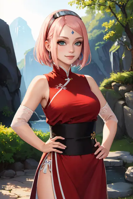 Shippuden: harunoshipp, hairband, forehead protector, sleeveless shirt, gloves, bike shorts
