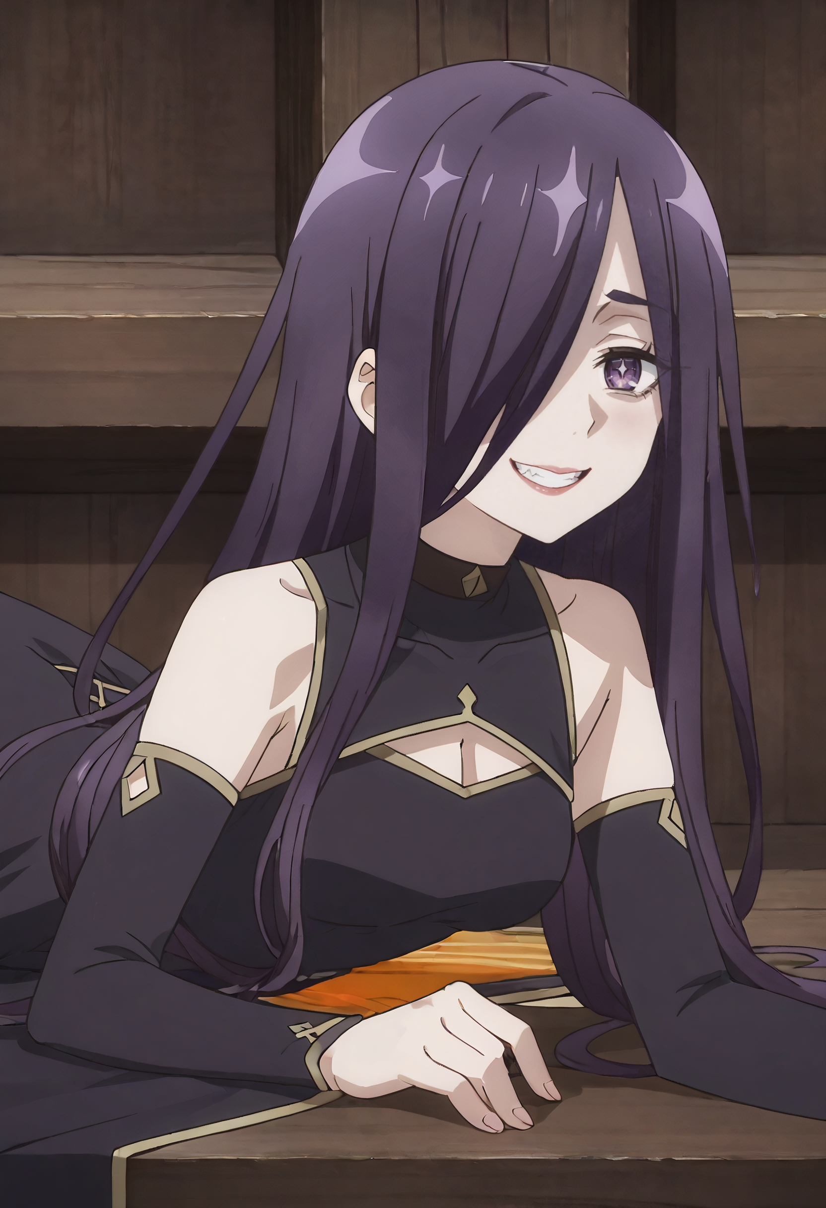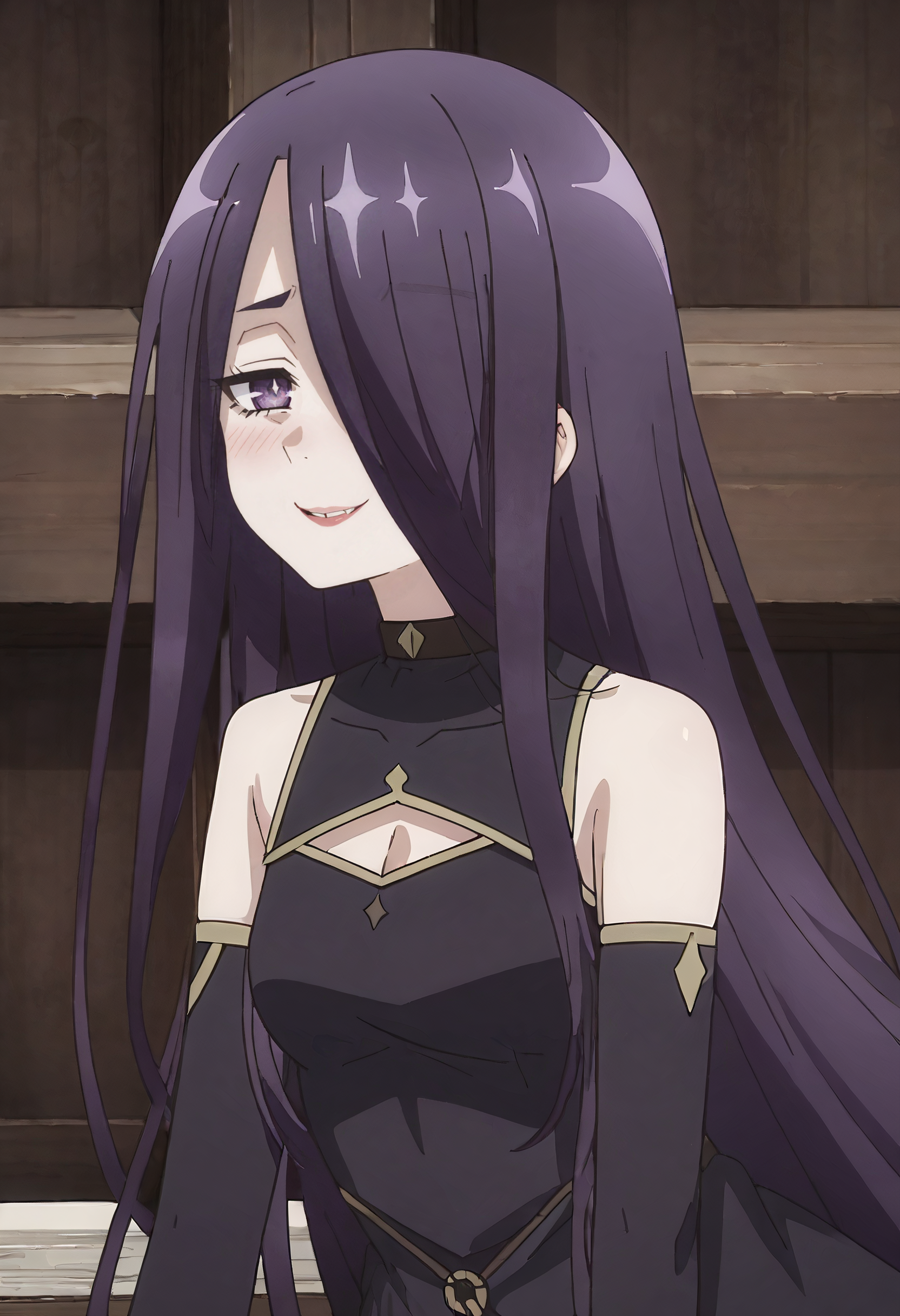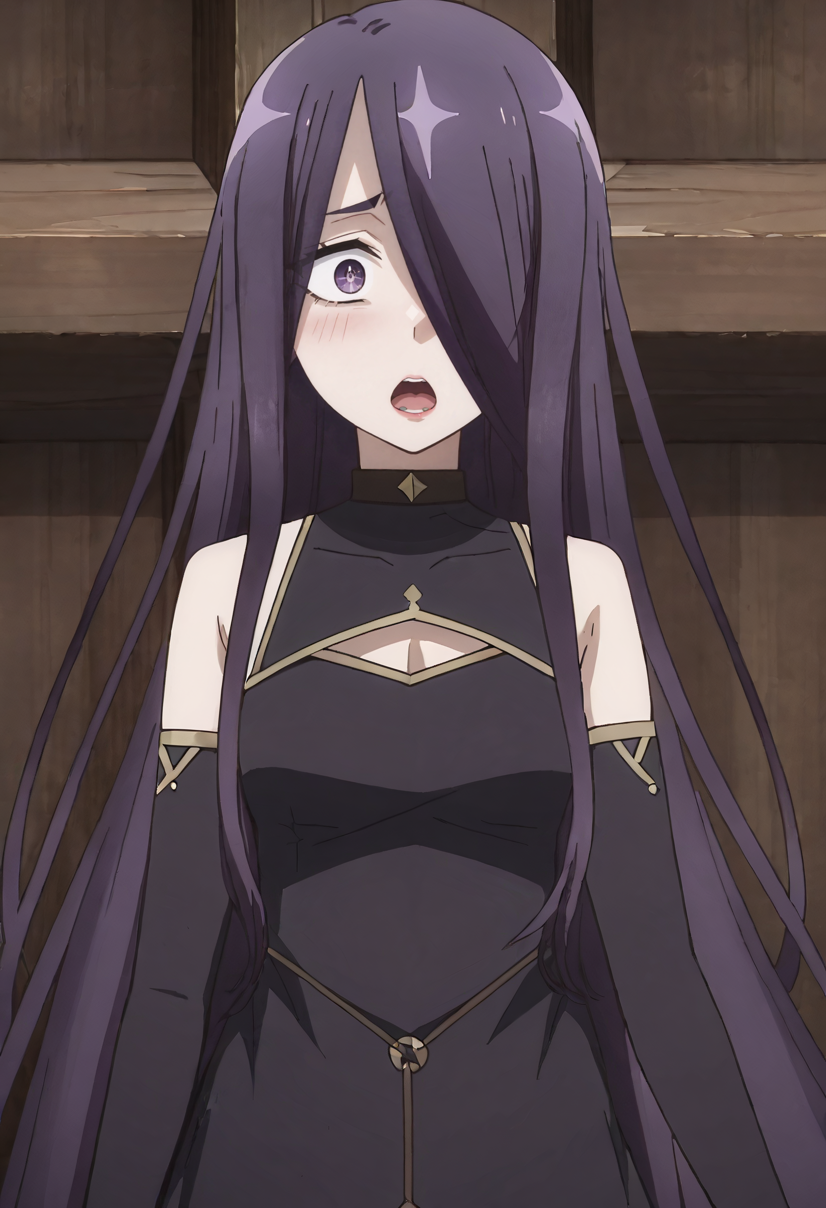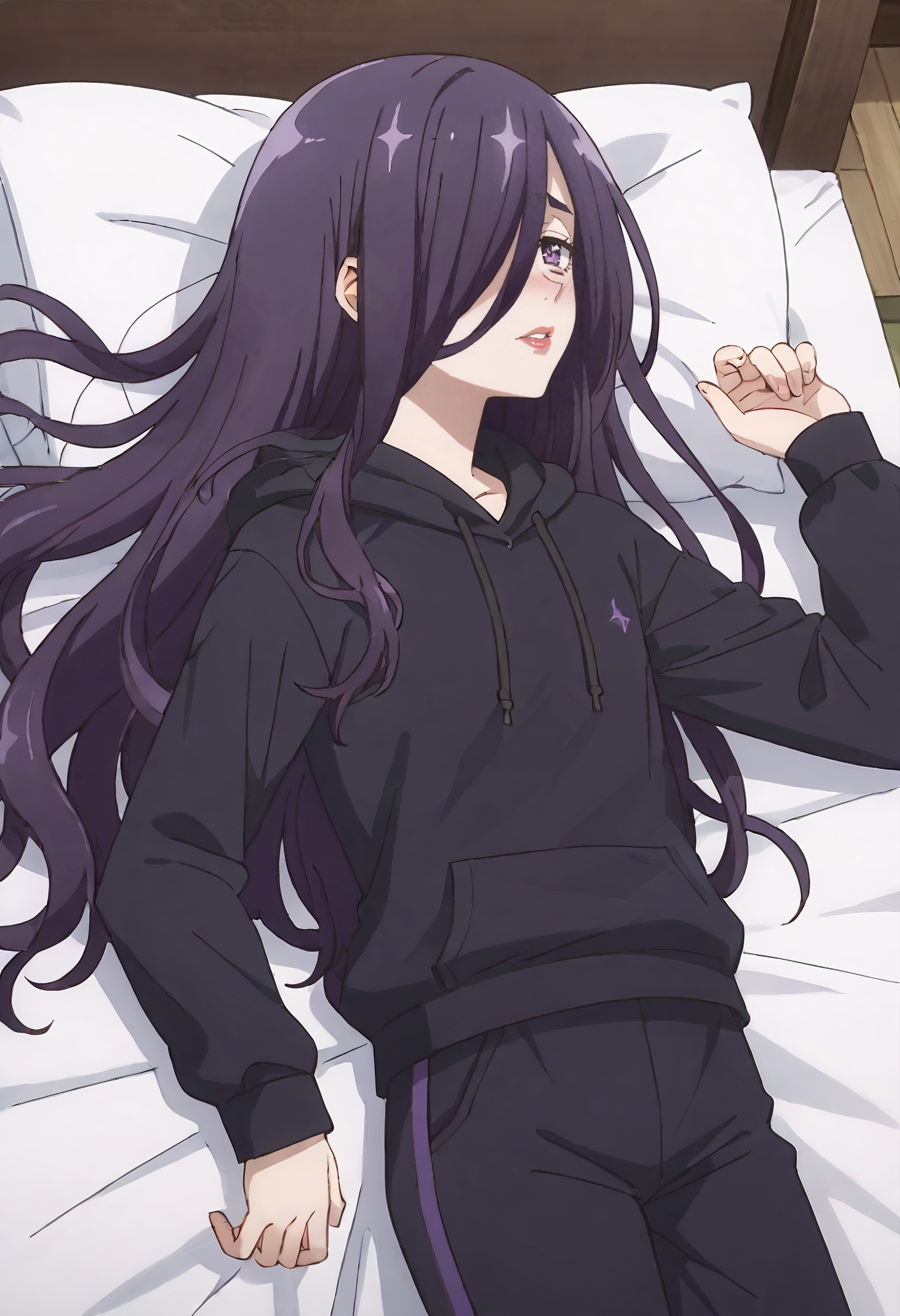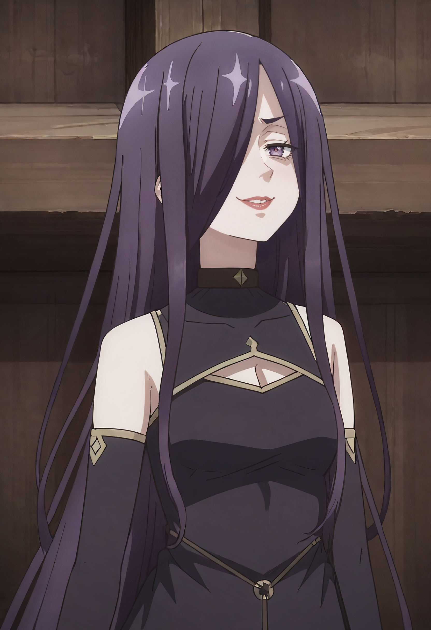 JHNInnkeeper、ロングヘア、パープルヘア、片方の目に髪がかかる、非常に長い髪、パープルアイ