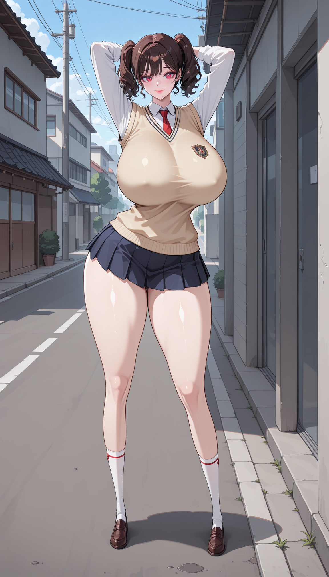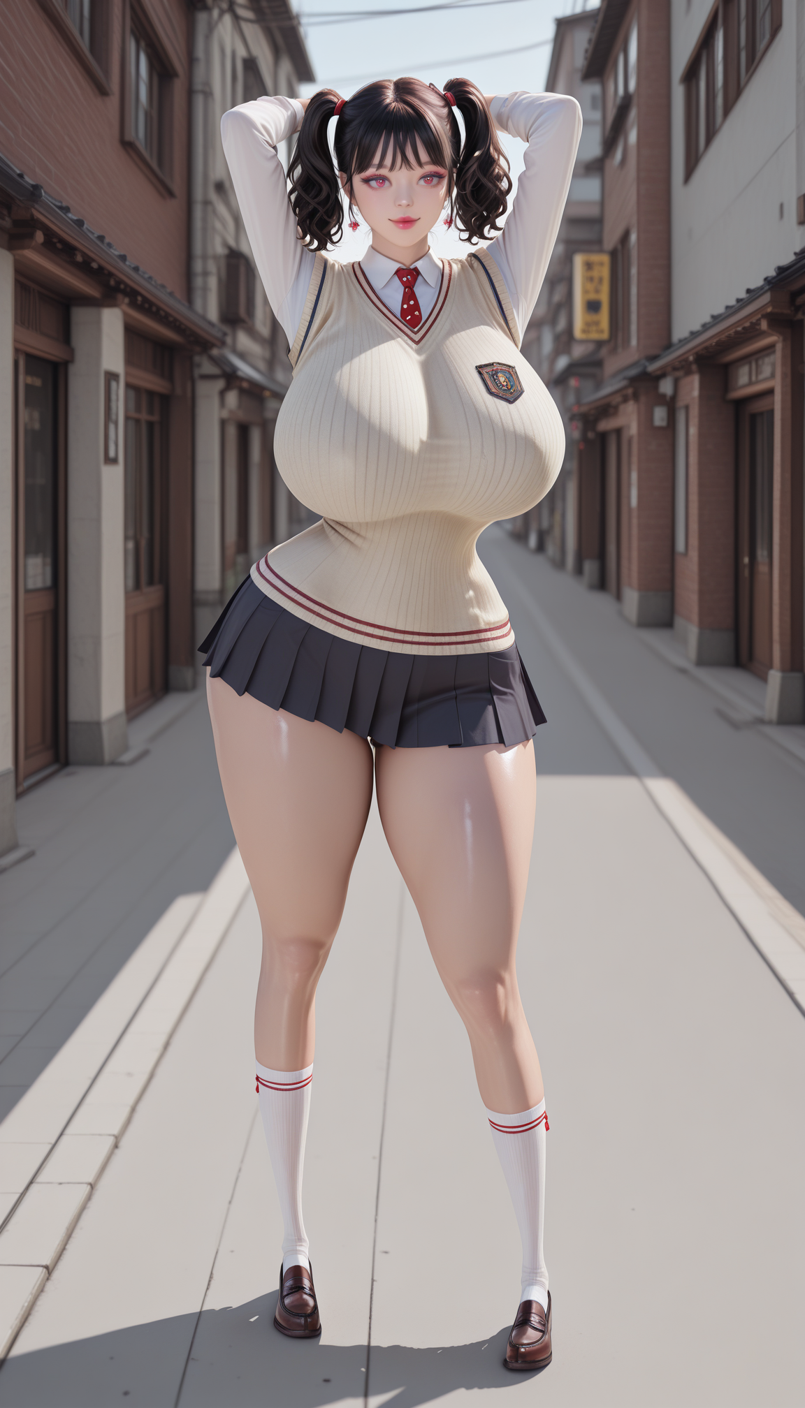 Klothes_0050, Kostume, Scgirl, Sleeve Shirt, Sweater Vest, Lowleg Pleated Skirt, Necktie, Athletic Socks, Loafer