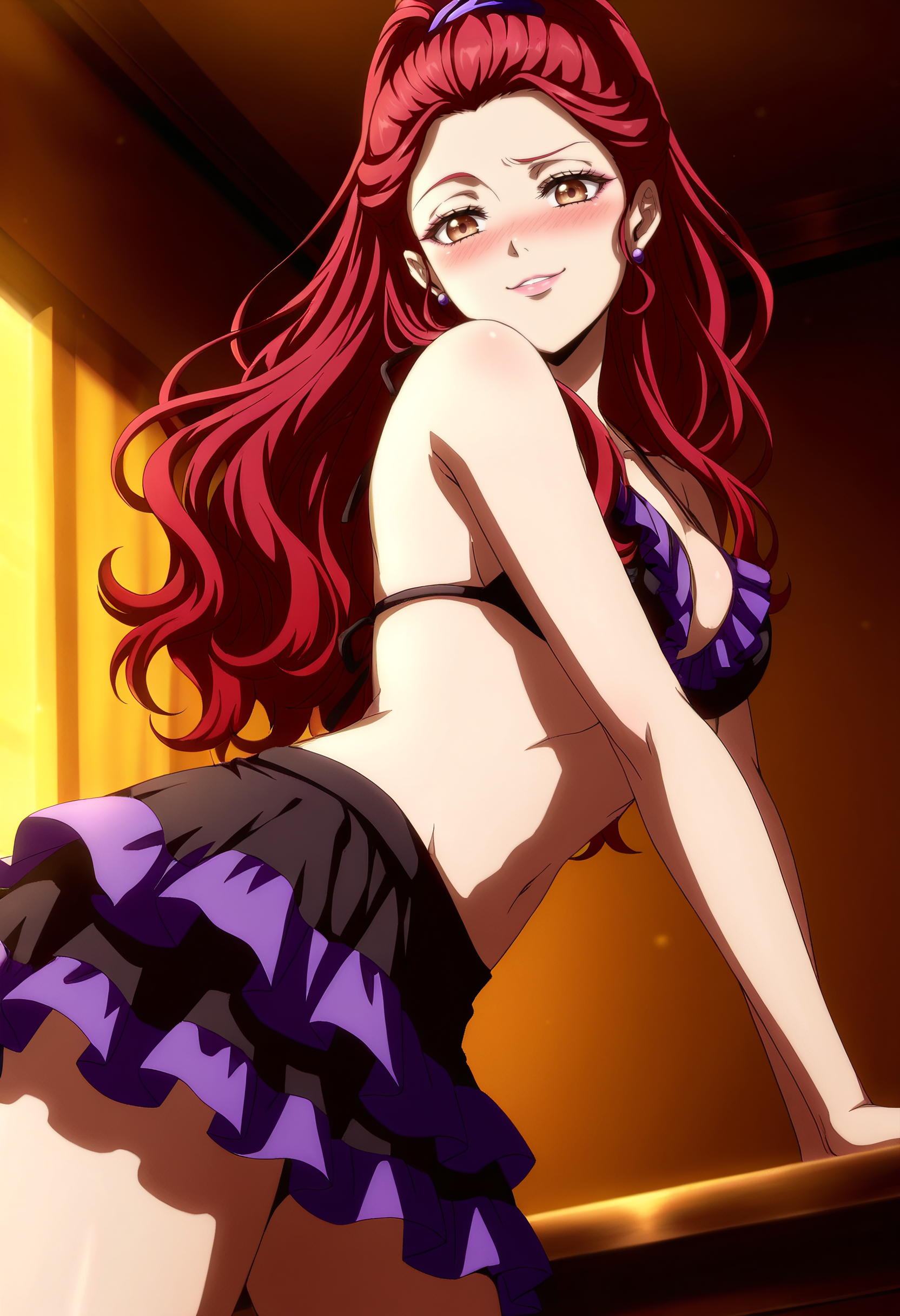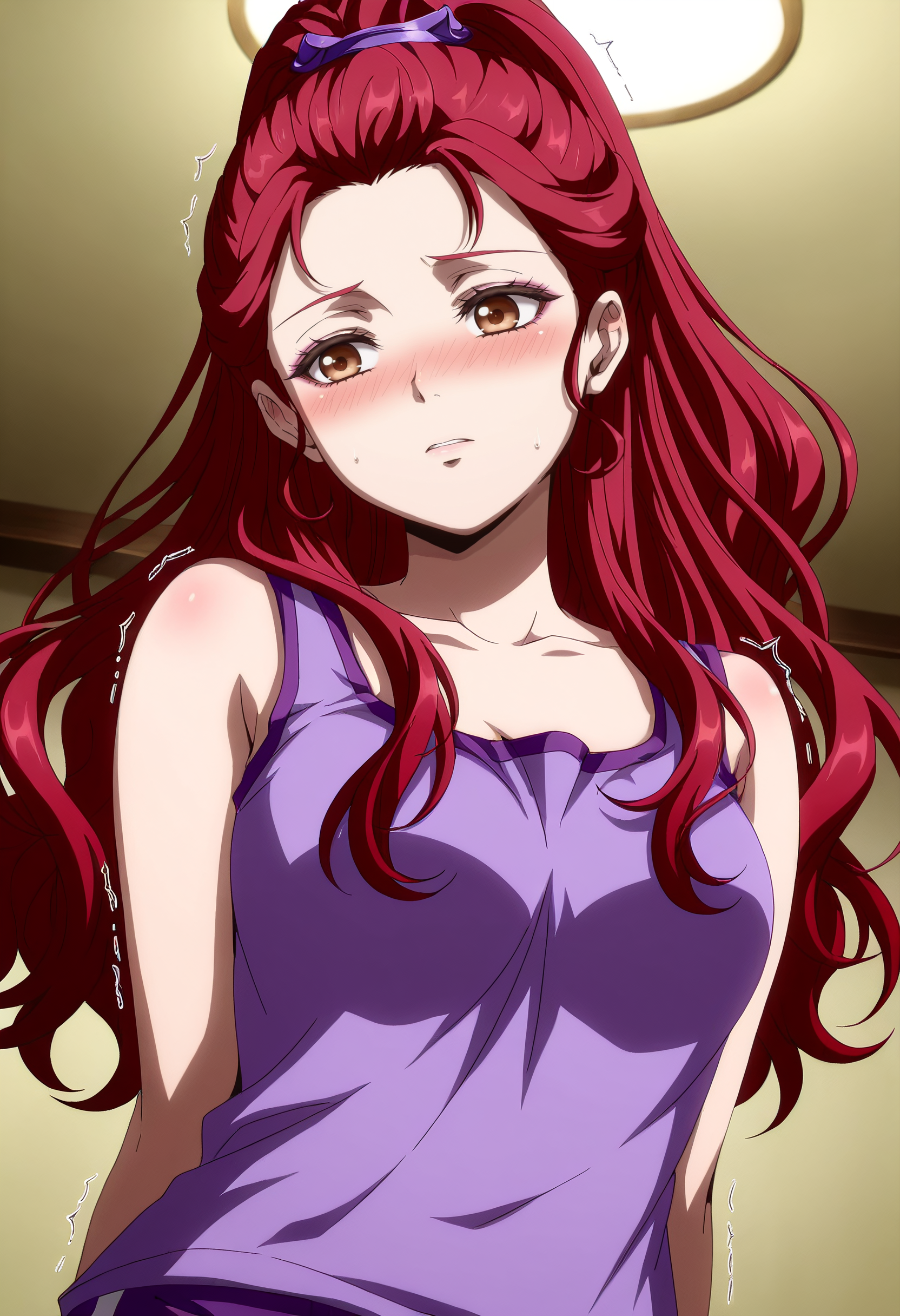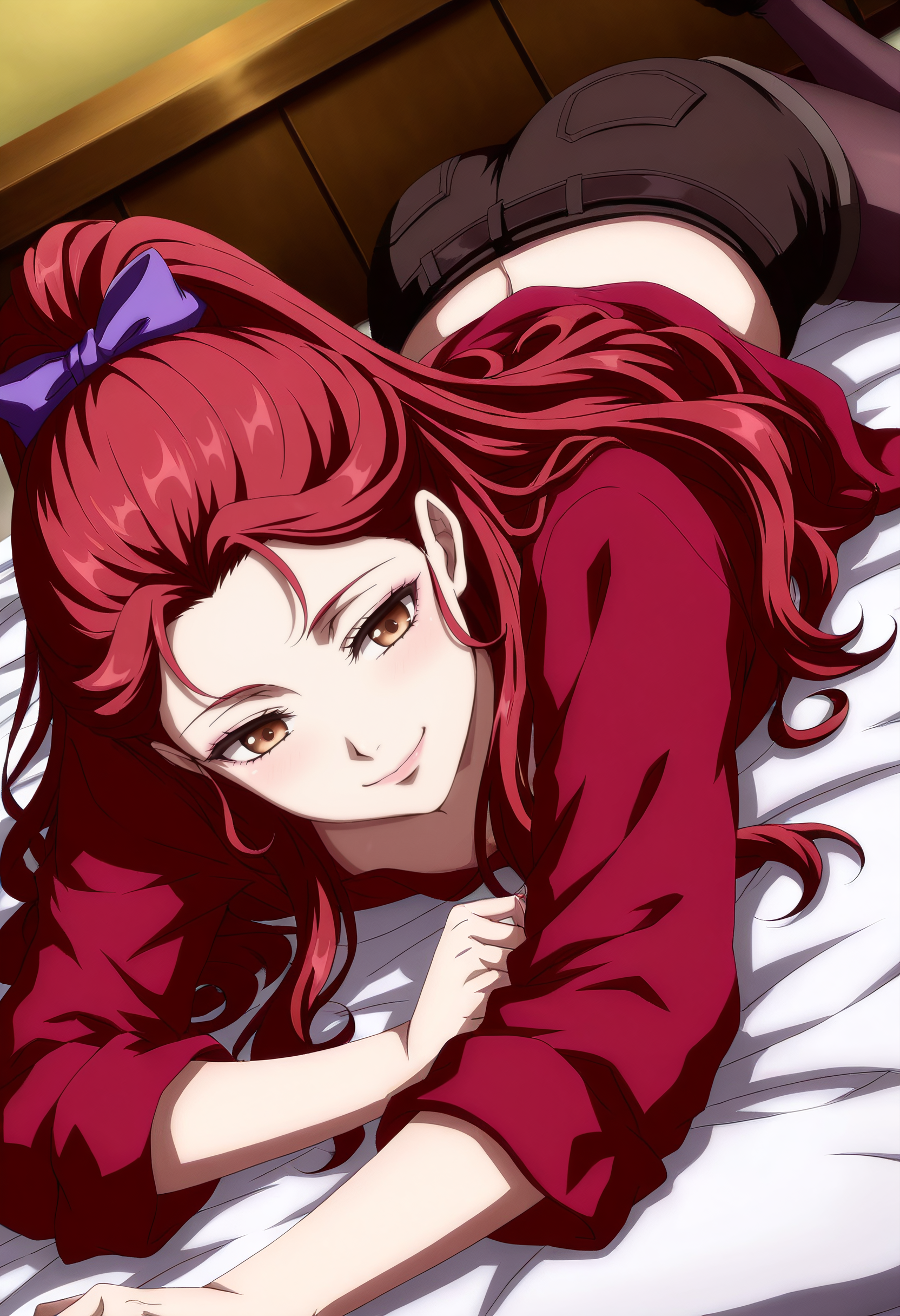 GZZSelena, 긴 머리, 빨간 머리, 토끼꼬리, 곱슬머리, 높은 토끼꼬리, 갈색 눈, 이마,