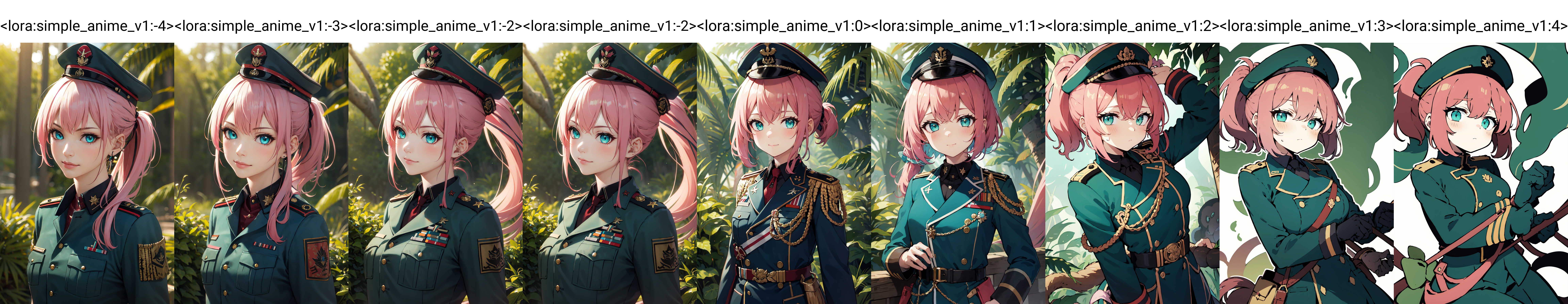 我为了一个更大项目的需求匆忙制作了这个。使用Ostris的AI工具包,在Meinahentai之上训练了350步。LoRA的内部名称为simple_anime_v1。