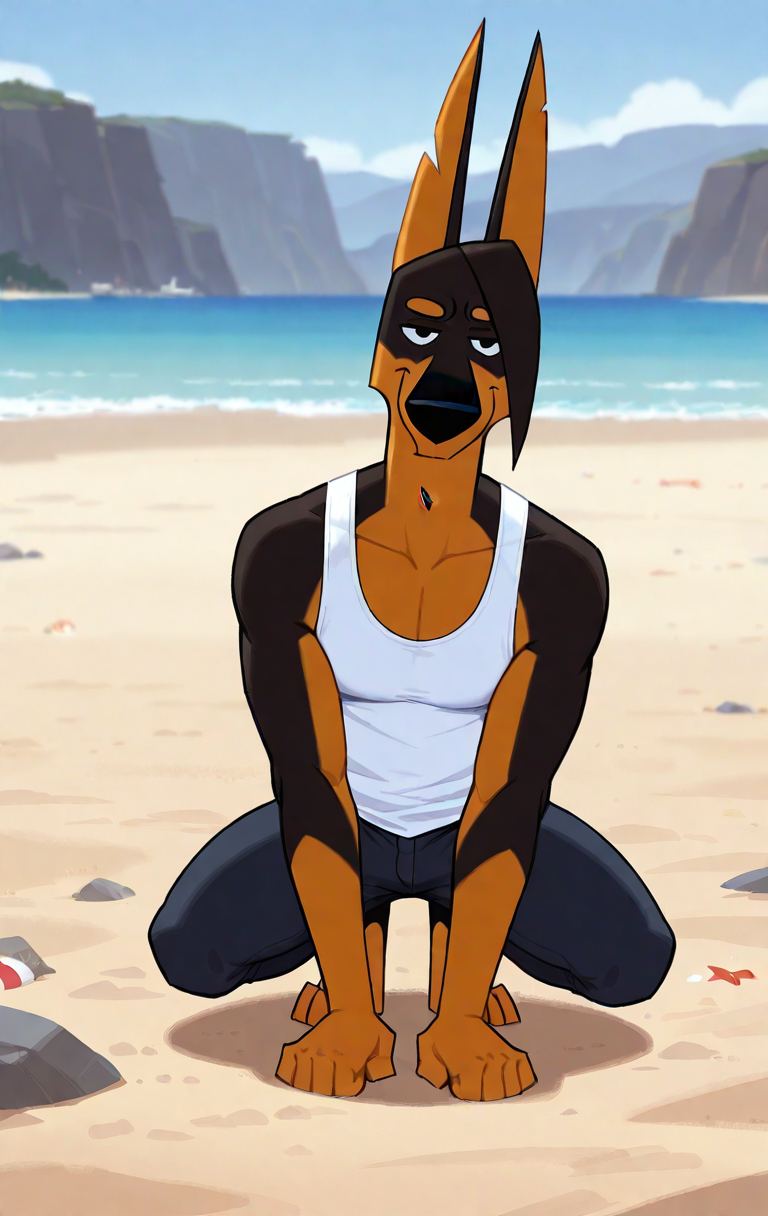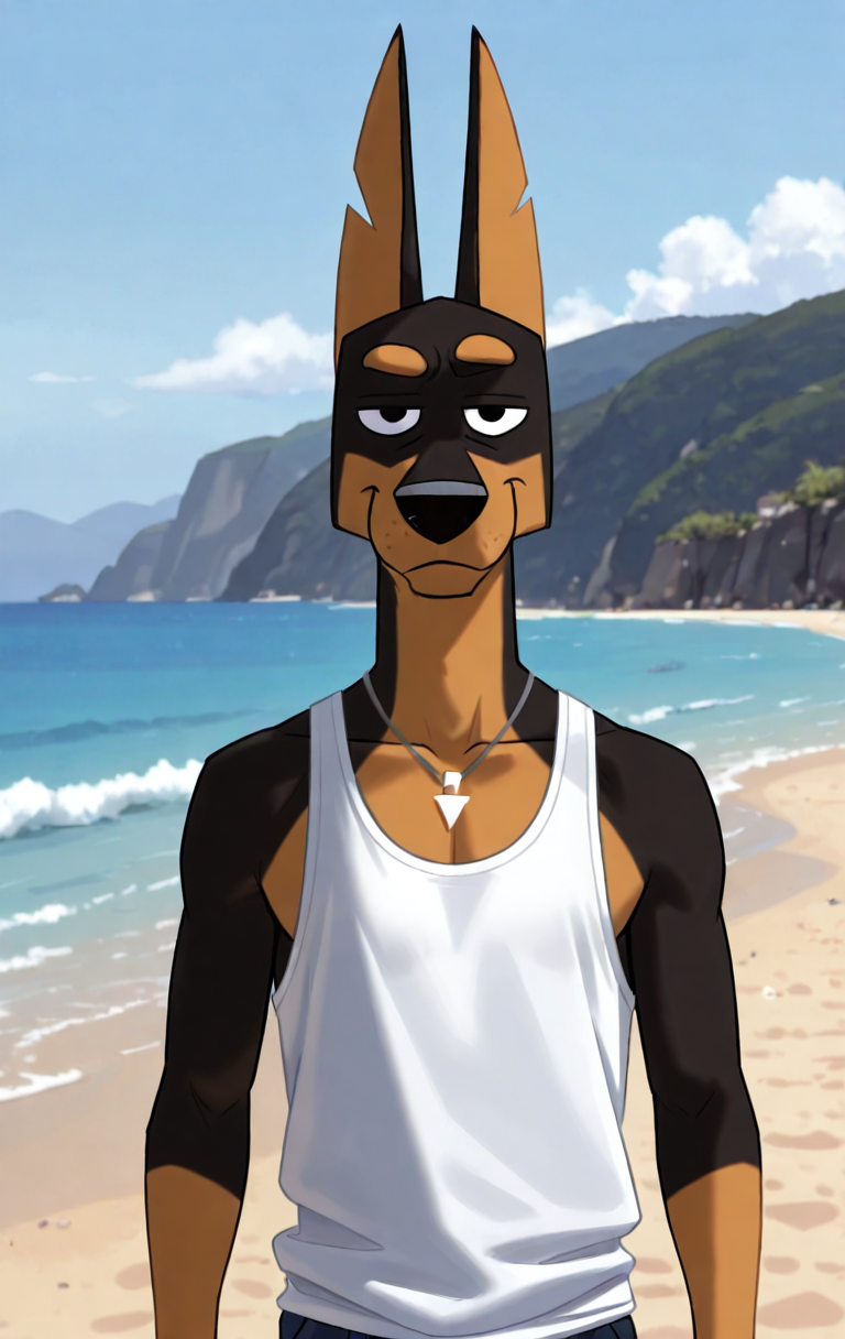 sp1ke, doberman, dog, black nose, two-tone fur, shark-tooth collar, pointy ears